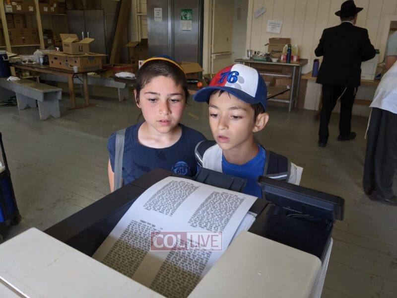 The campers participated in the printing by learning from the first copy and reciting pesukim.