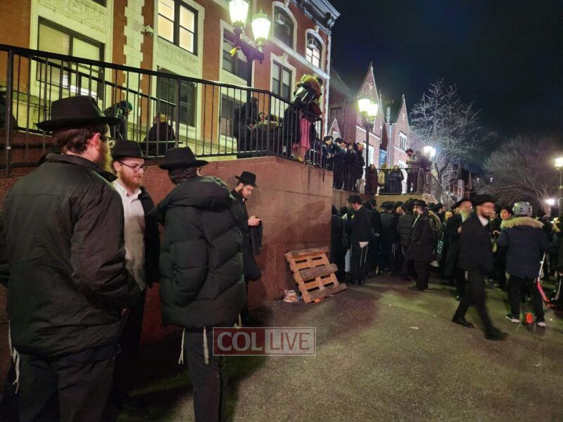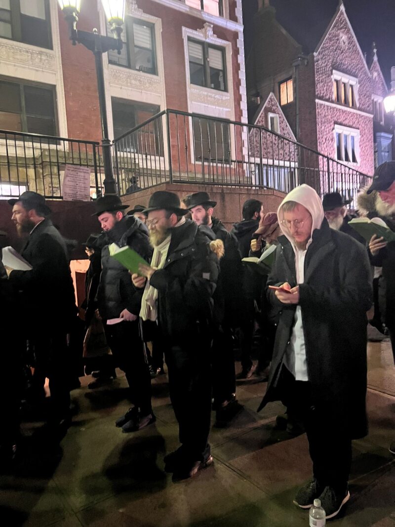 Crown Heights residents, visitors and Yeshiva bochurim who came to daven on Monday night at 770 Eastern Parkway needed to do so outside and in the cold.