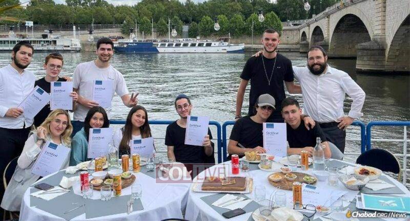 In the 13th arrondissement of Paris, where classic Baroque and Belle Époque architecture meets modern high-risers, boats of all kinds dot the left bank of the River Seine. The neighborhood, home to several colleges and universities, is teeming with students from around the world—about 30,000 of them. The boats serve as popular spots to mingle, dine and party for the bustling student population, though one barge stands out. The long white vessel with blue stripes looks like any other until you walk up the gangway and enter to find that it is Chabad on Campus’ floating lounge. During the day, it’s a space where Jewish students can study, relax or attend a Torah class; at night, it becomes the location of choice for Parisian Jews to celebrate engagements or birthday parties.