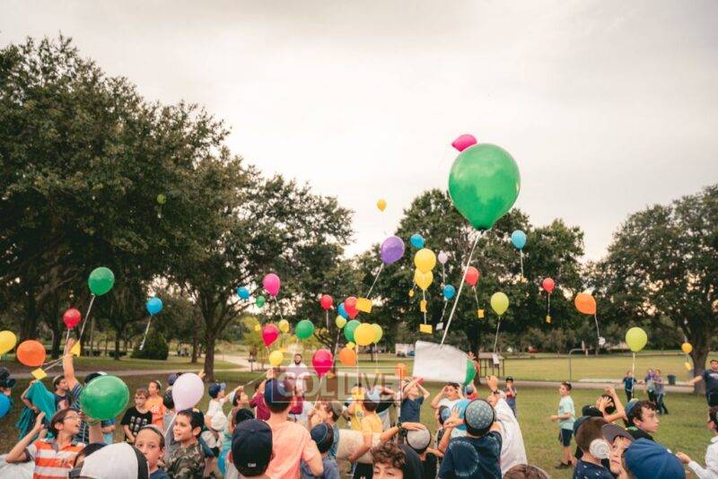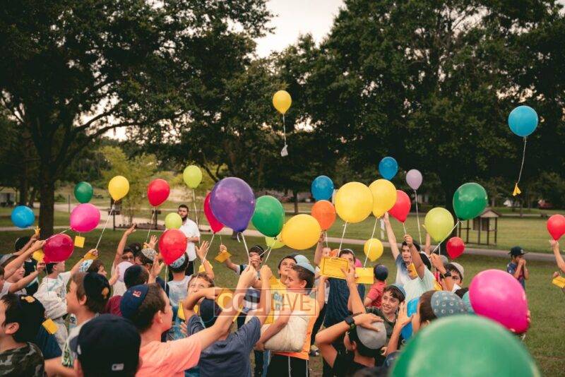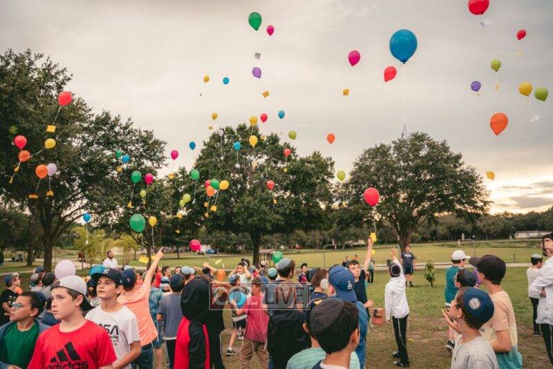 The day’s event culminated with a balloon send-off. Attached to each balloon was a hachlata-card filled out earlier that day by each camper, taking upon himself a mitzvah to bring Moshiach and the Geulah now.