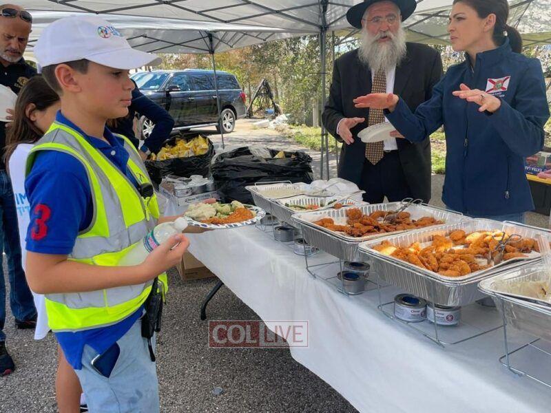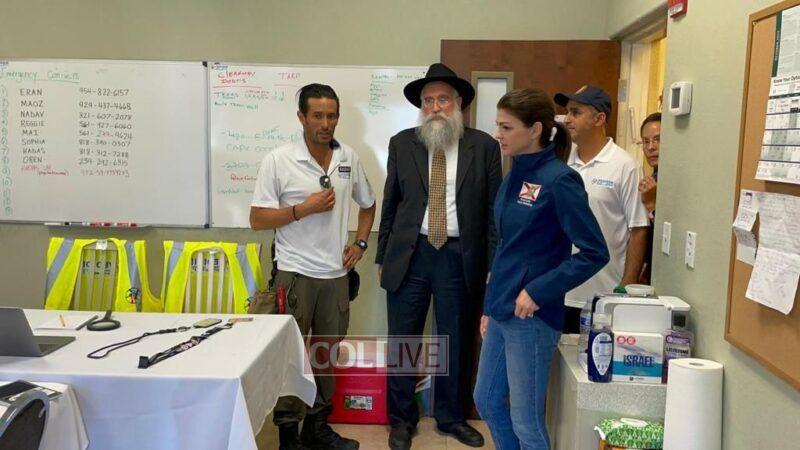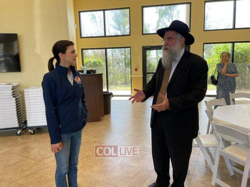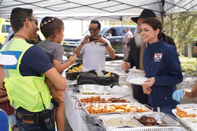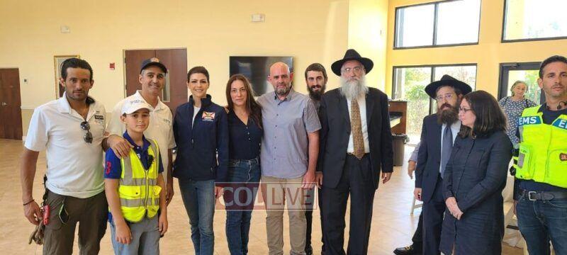 The First Lady was welcomed by the Local Shliach Rabbi Yitzchok Minkowicz, Director of Chabad Lubavitch of Southwest Florida, Rabbi Peretz Meir Simcha Minkowicz, Assistant Rabbi at Chabad Lubavitch of Southwest Florida, as well Eran Hazan of Yedidim USA that was responsible for setting up the whole Food operation that is providing hot meals for the community. Also in attendance were Maor and Sigal Elbaz-Starinsky, Consul General of the Consulate General of Miami, Rabbi Yossi and Rivky Labkowski, Shluchim in Cape Coral Florida, as well as Hatzalah representatives.