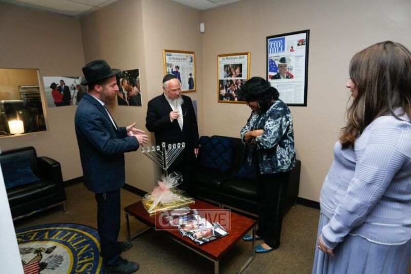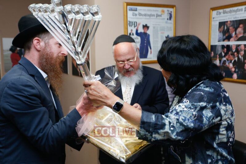 In a heartfelt gesture of unity and support, Rabbis Benzion Korf, director of Friends of Lubavitch of Florida, and Sholom Kleinman of Chabad of Miami Gardens, presented a beautiful menorah to the honorable Congresswoman Fredericka Wilson on the occasion of her eighty-first birthday.