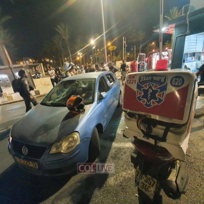 In the first incident, a man, woman, and a one-year-old infant were lightly injured after rocks were thrown at a Jewish vehicle near the Damascus Gate in Jerusalem. United Hatzalah volunteer EMT Muhammad Abid was one of the first responders at the scene and treated the Jewish family. After receiving initial treatment at the scene the family was taken to Hadassah Har Hatzofim in Jerusalem.