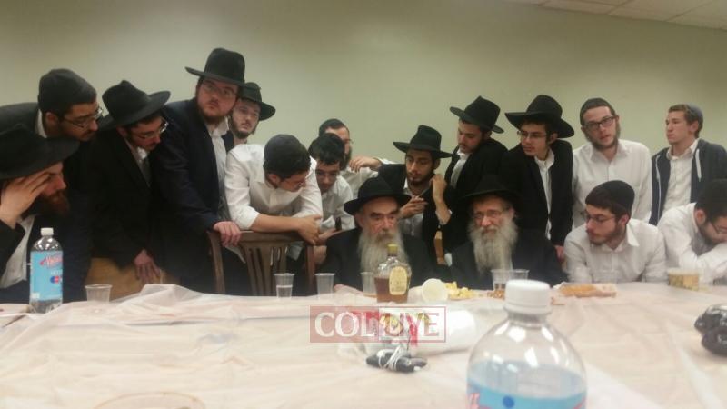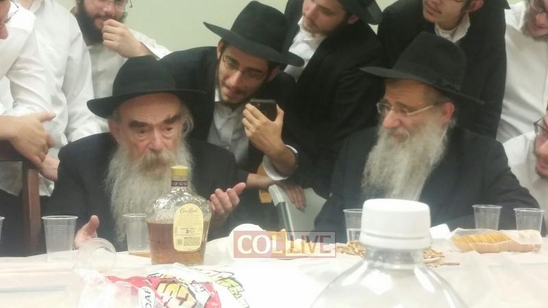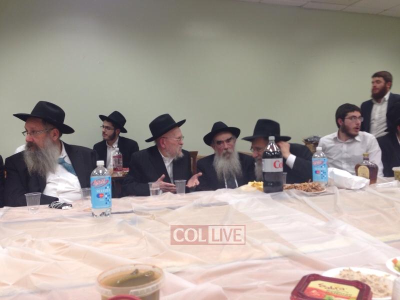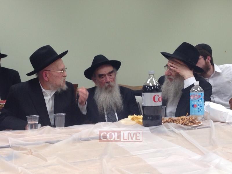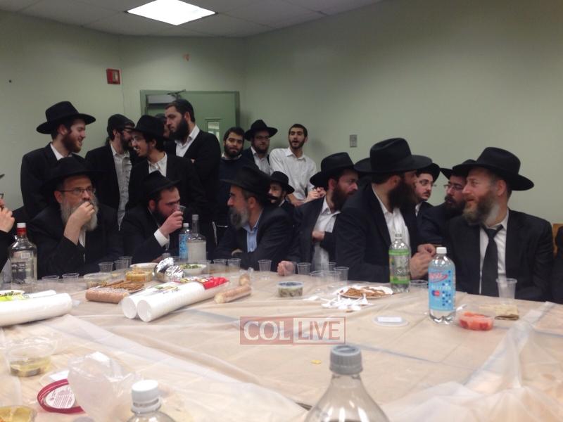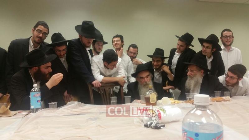 Joining the farbrengen were fellow Oholei Torah staff: Mashpia Rabbi Nachman Schapiro, Dean Rabbi Elchanan Lesches, maggidei shiurim Rabbi Avrohom Hertz, Rabbi Fishel Oster, Rabbi Shmuel Chaim Bluming, Rabbi Shmuel Shur, Rabbi Shlomo Kaplan and Rabbi Levi Matusof.