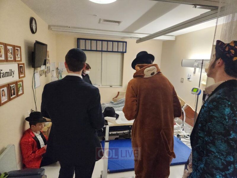 Early the next morning, the visiting bochurim from the Suffield Yeshiva went out across the city bringing the joy of Purim to others—delivering Mishloach Manos and reading the Megillah in nursing homes, offices, community facilities, and private homes, ensuring that even the elderly and homebound could experience the holiday.
