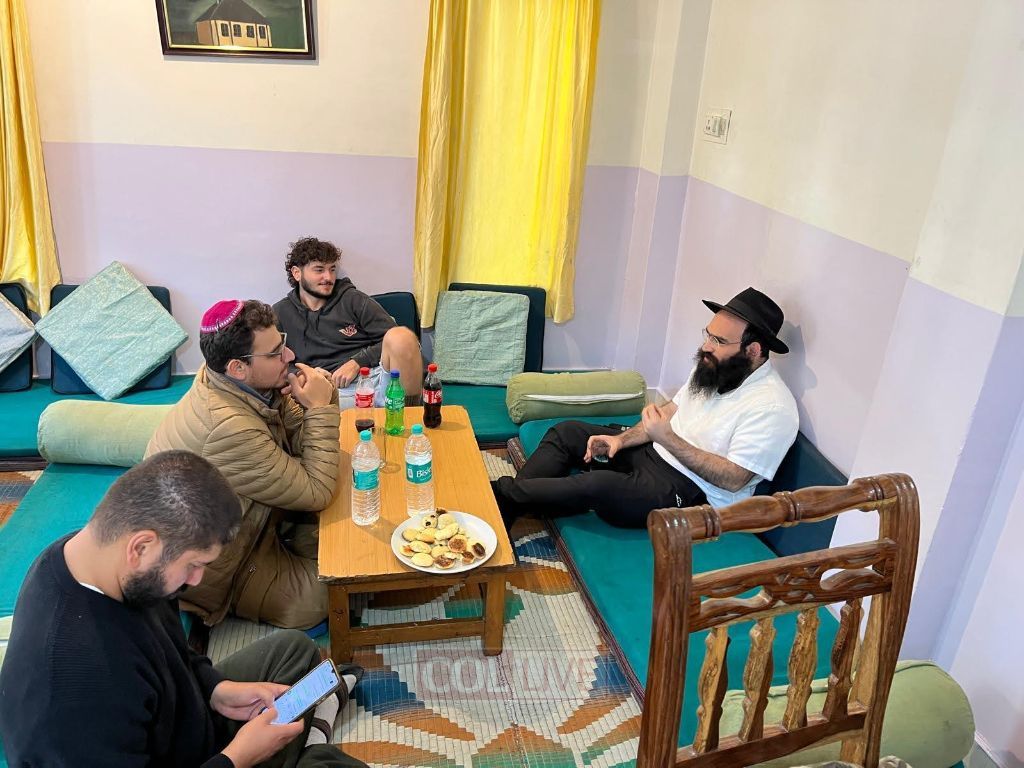 The Dharamshala region of northern India, an area often dubbed “Hippie Village,” draws young travelers who stay for months at a time, many of them working through the aftermath of military service or a life transition. In Dharamkot, Broner and Weiss ran the existing Chabad House themselves, as the local shliach had been stuck in Israel because of the war. In nearby Bhagsu, Rabbis Avi Winner and Yossi Elberg ran a second Seder while also operating a hostel for Jewish travelers passing through.