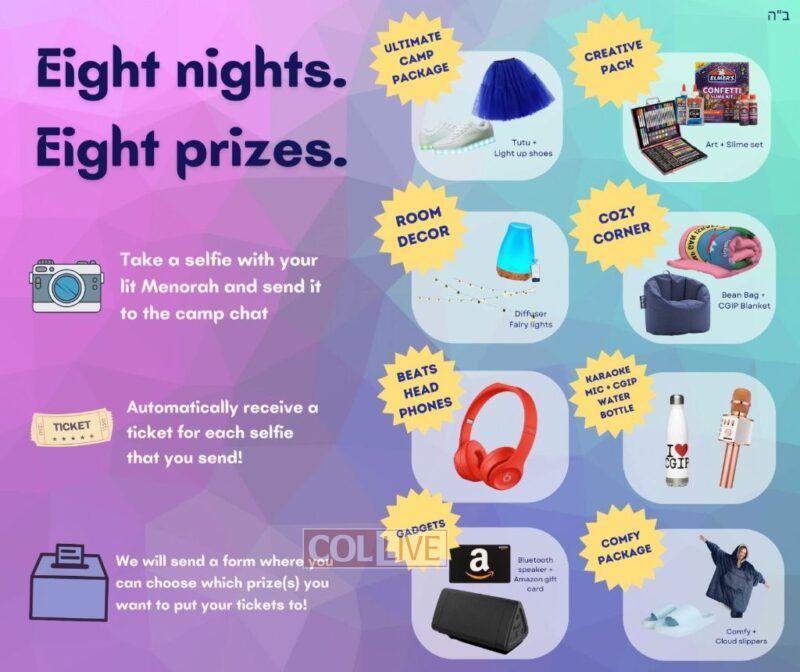 With Chanukah approaching, they knew they had to do something special for the campers, so they put together a three-part plan: A Chanukah package shipped to each camper’s home, a DIY Menorah contest, and a Menorah lighting challenge with a special auction.