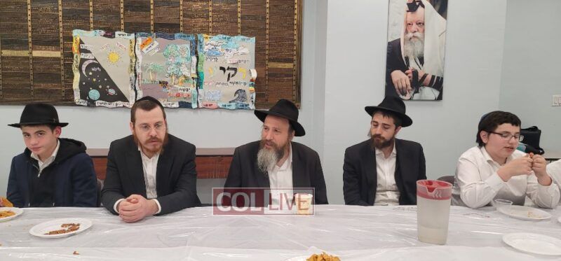 Afterward, everybody enjoyed a lavish lunch with wedding-style printed menus, adding a special touch, while hearing Rabbi A. Sherr’s personal encounter of receiving the Kuntres ‘Drushei Chasuna’ from the Rebbe on 17 Kislev, 5752.