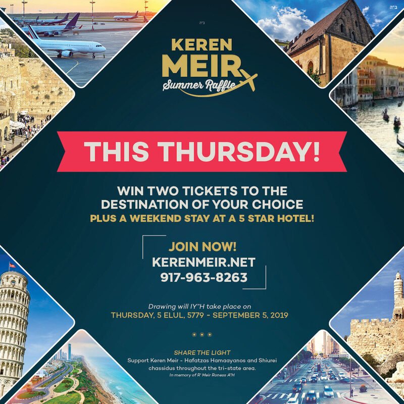 Keren Meir is now holding its 3rd annual Summer Raffle. The money raised will go directly to fund the costs associated with the organization of the shiurim and Hafotzas HaMayonos.