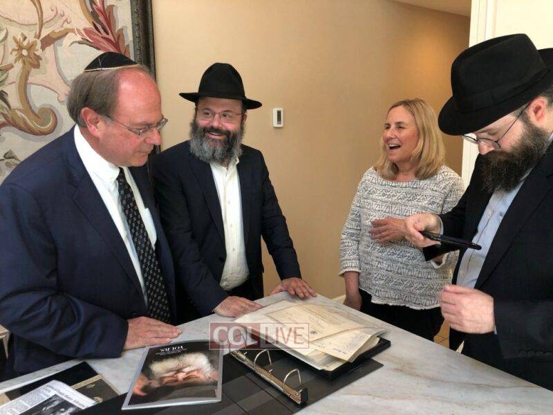 On Thursday, 7 Tammuz, the unique collection made its way home to the Chabad Central Library of Agudas Chasidei Chabad, and was graciously received by the library’s director, Rabbi Shalom DovBer Levine. Thus the collection rejoined its family — the large collection of documents and letters housed in the Library’s Archive Center.