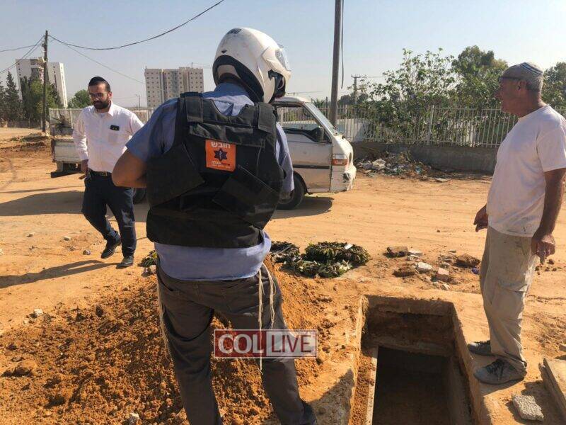 Under constant rocket fire from Gaza since 6:00 a.m. this morning, volunteers from United Hatzalah in Sderot stepped up to perform an act of everlasting kindness when they assisted in preparing the grave and burial rights of a resident of the city who died yesterday.