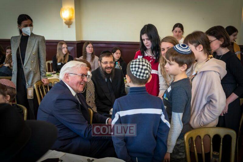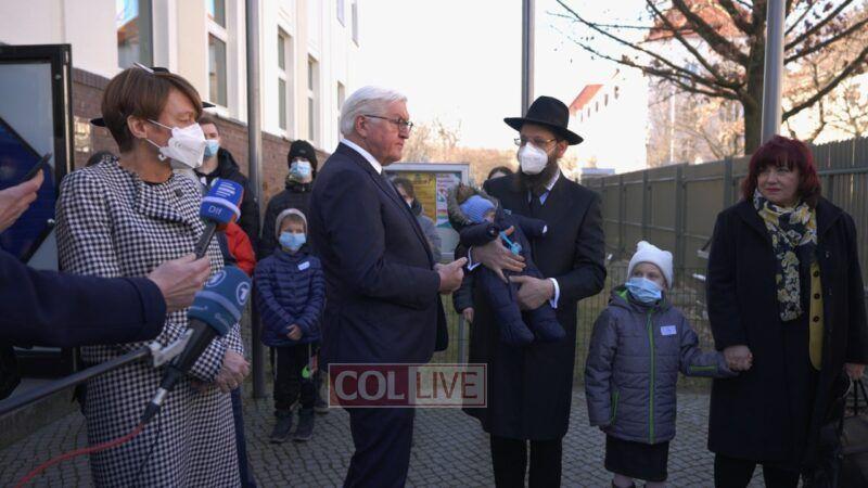 On Monday, the President of Germany Frank-Walter Steinmeier and his wife Elke Büdenbender paid a special visit to Chabad of Berlin, to meet with 120 orphan children refugees from Ukraine.