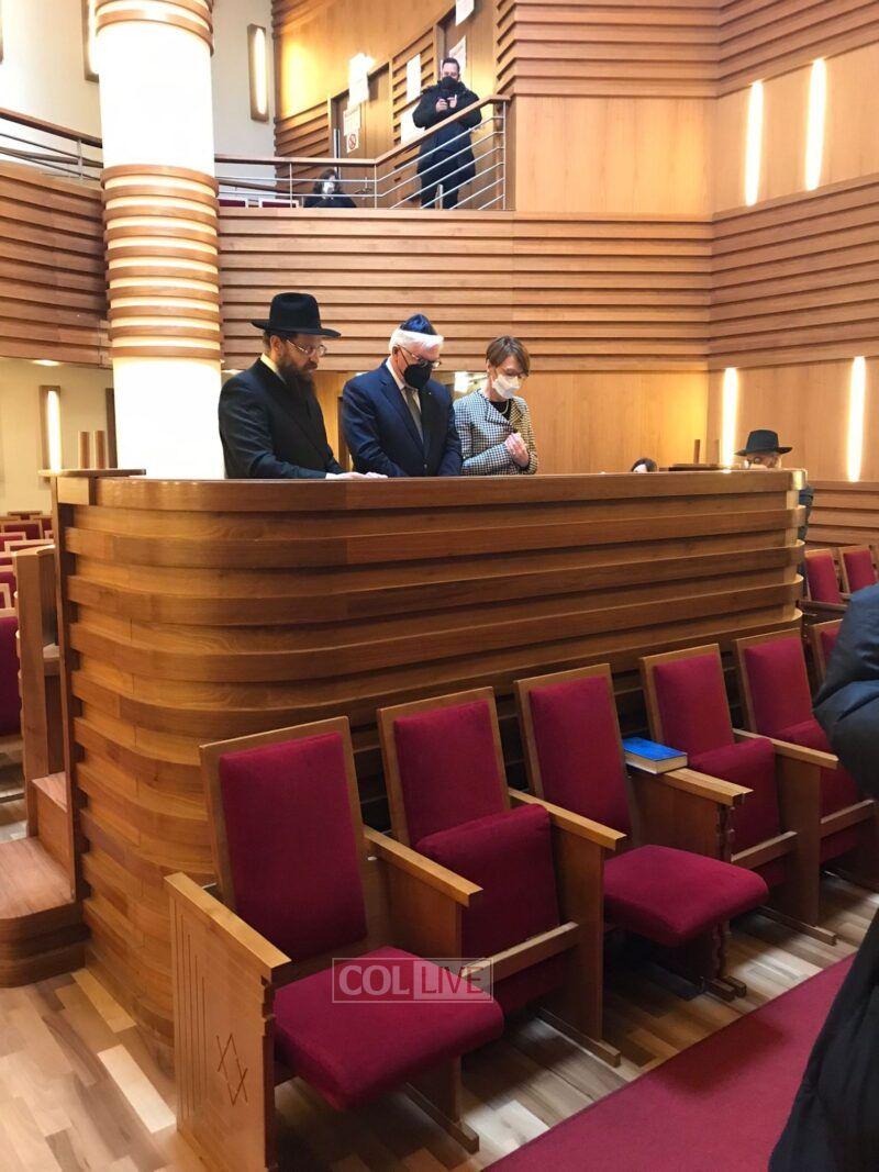 During a visit to the Chabad Center on Monday, the President was greeted by Rabbi Yehuda Tiechtel, Shliach and Chief Rabbi of Berlin. They held a brief prayer for peace in the Chabad Shul.