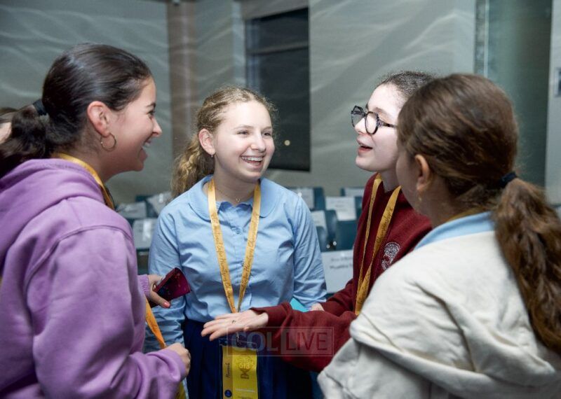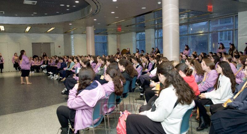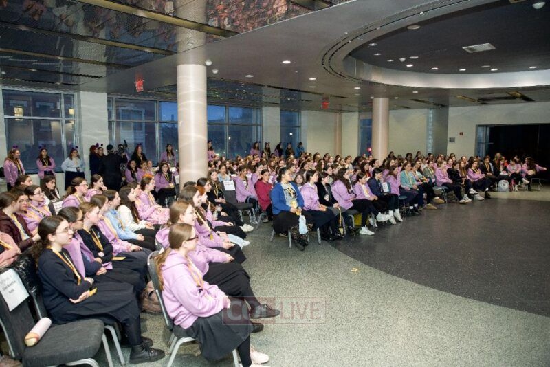 Girls from around the world who are participating in the Kol Hatorah Kulah Shabbaton in Crown Heights gathered on Wednesday evening for the kickoff to the exciting weekend highlighted by the girls International Chidon Chidon Game Show event. Photos