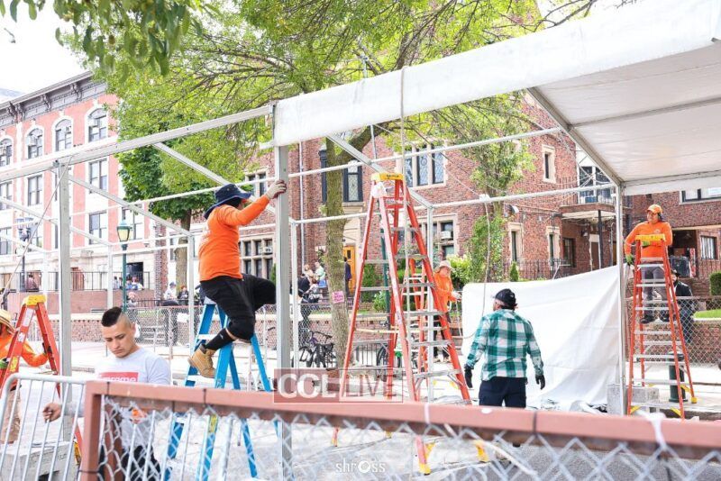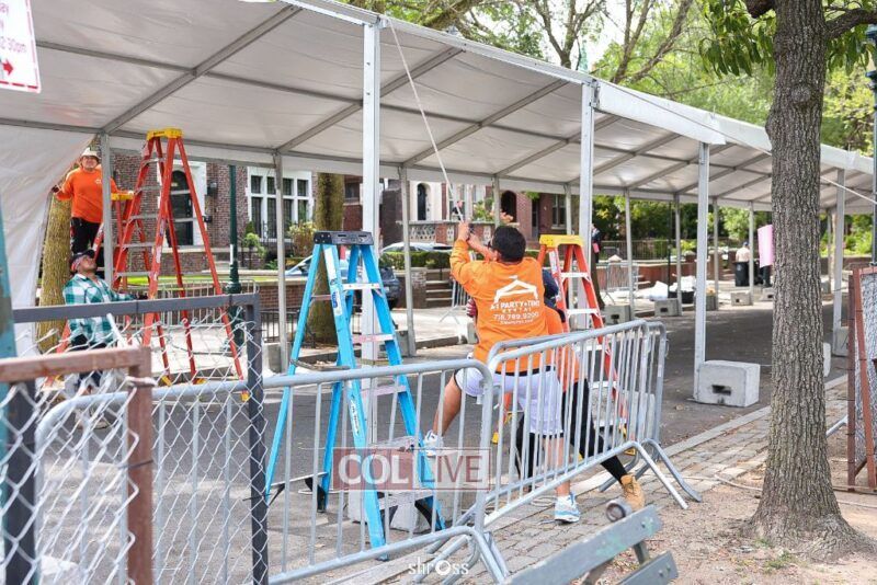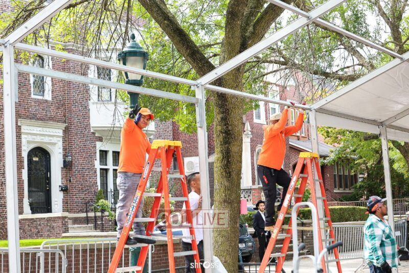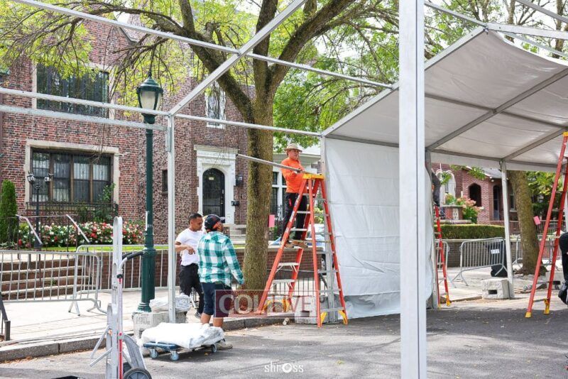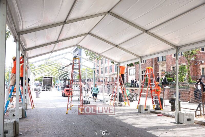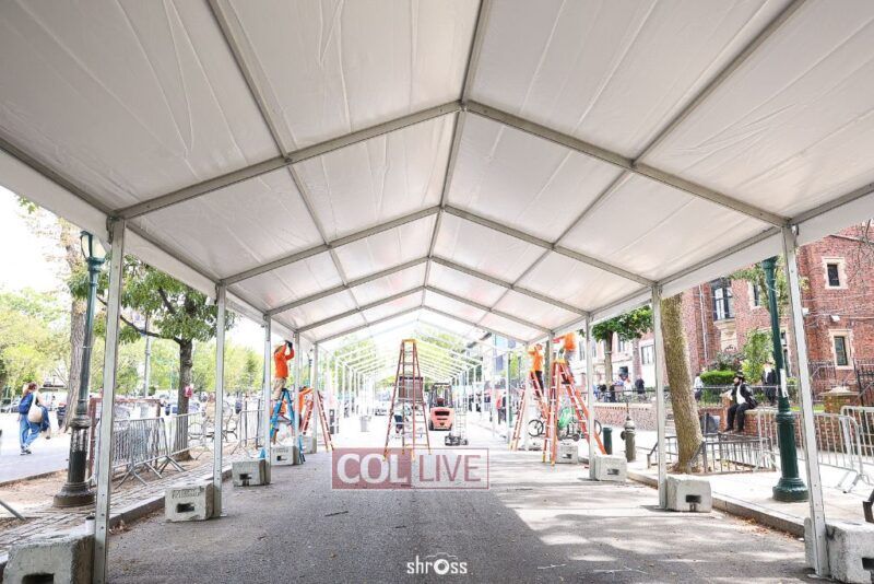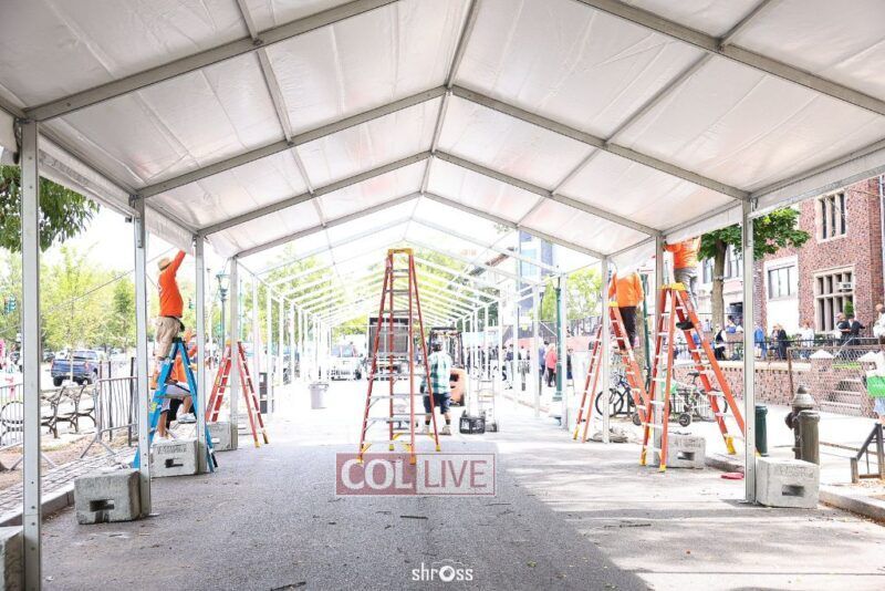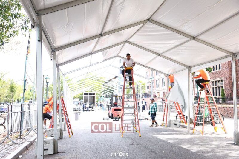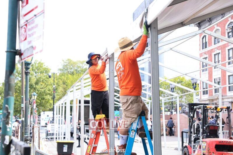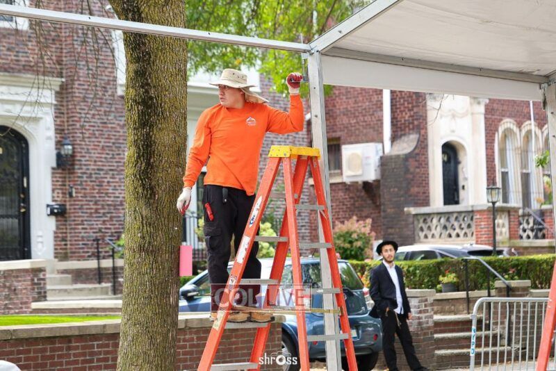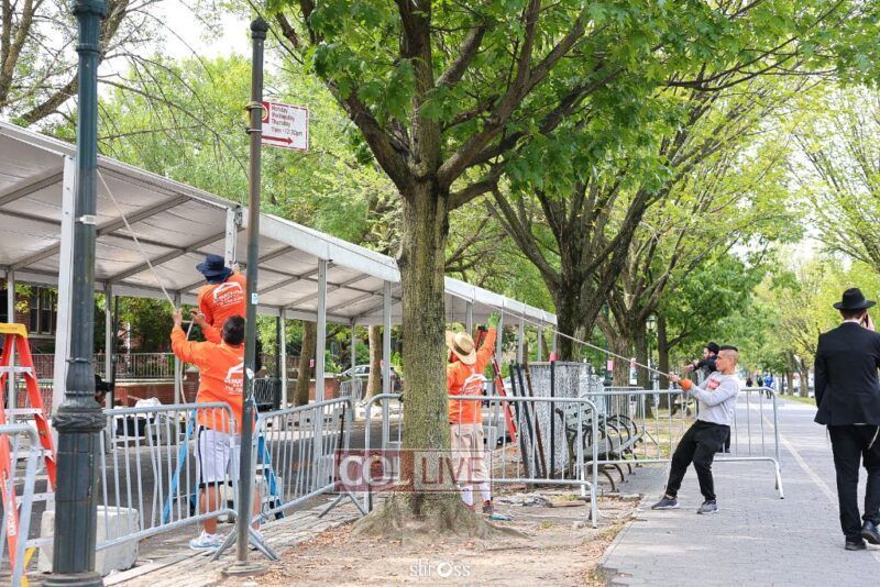 The large Tishrei tent is once again being built on Eastern Parkway, marking the ninth year of what has become a central fixture of the month of Tishrei in Crown Heights.