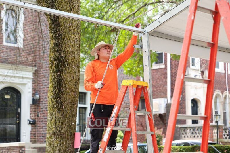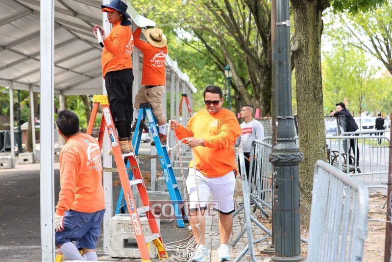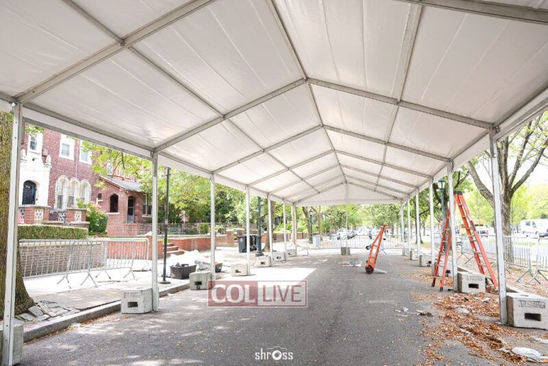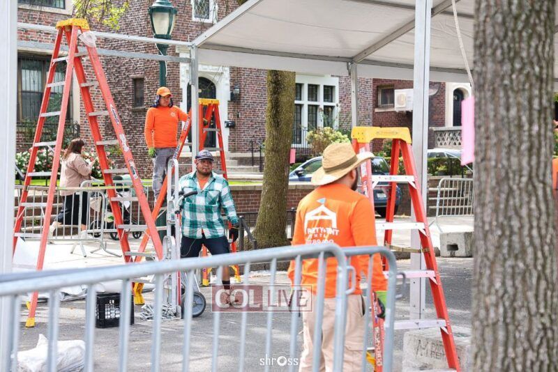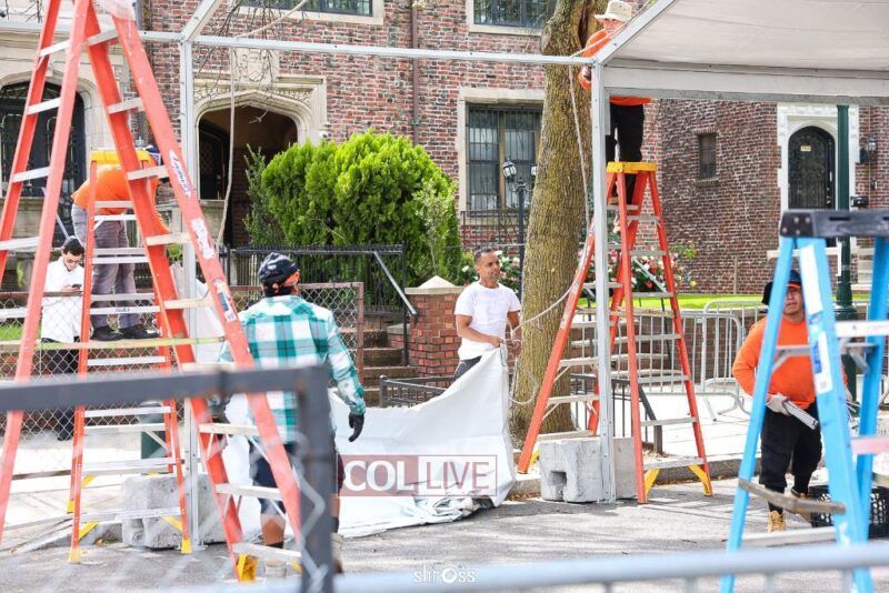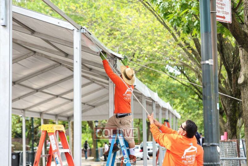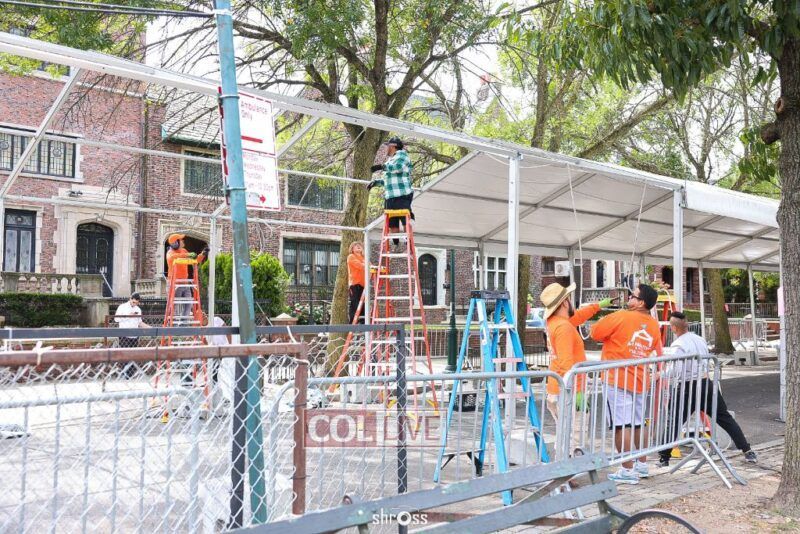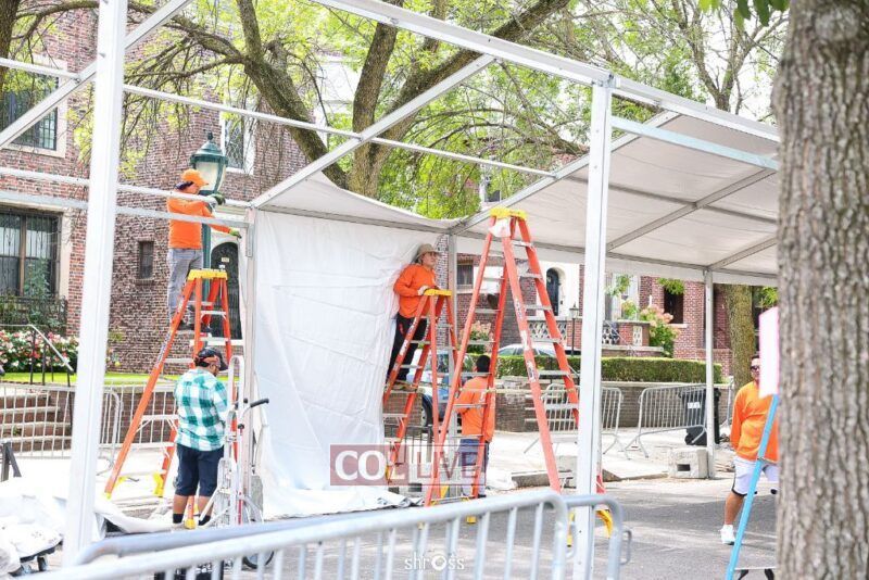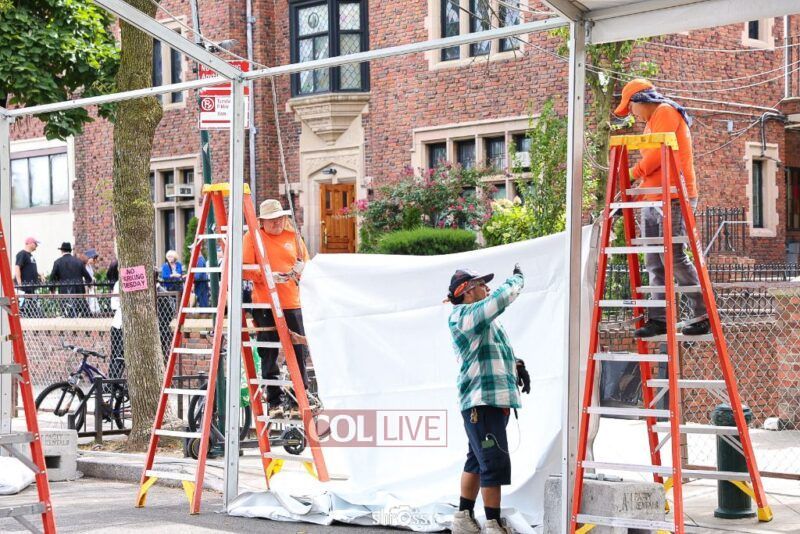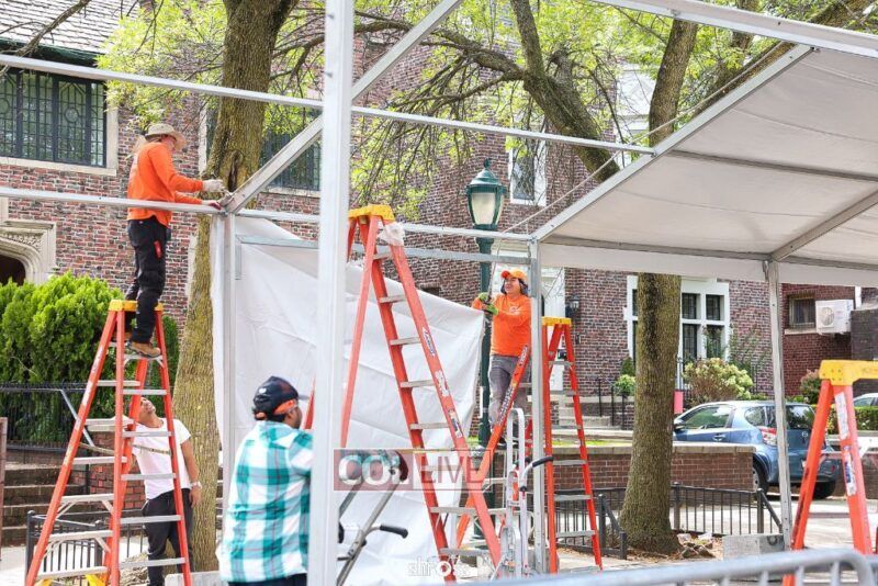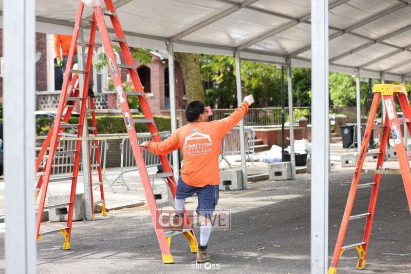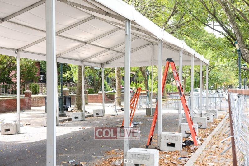 The large Tishrei tent is once again being built on Eastern Parkway, marking the ninth year of what has become a central fixture of the month of Tishrei in Crown Heights.