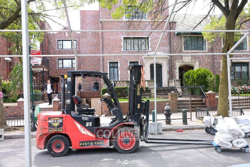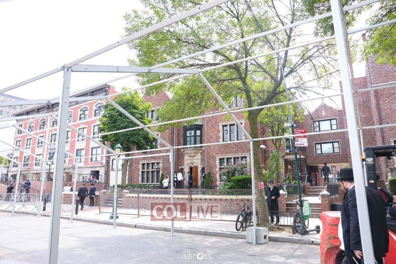 The 5,000-square-foot glass-style structure closes the street in front of 770 for the duration of the Yomim Tovim, providing overflow space as thousands of guests arrive from around the world. Inside, the facility is fully equipped with air-conditioning, generators, and professional lighting, creating space for round-the-clock davening, shiurim, and farbrengens.