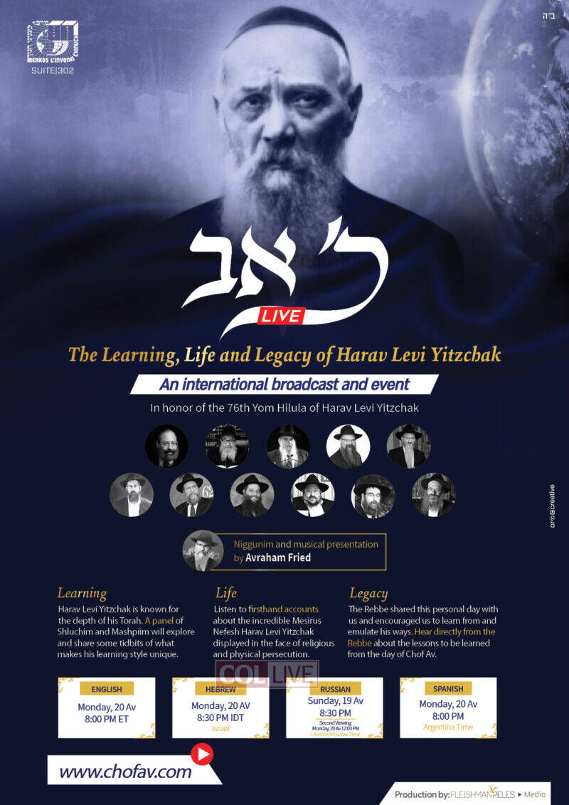 The Rebbe said that it’s a zechus and chova, a privilege and obligation, to learn Reb Levi Yitzchok’s teachings on the day of his yahrzeit. This program aims to highlight the life, teachings and legacy of Reb Levi Yitzchok and apply the lessons to our daily lives.