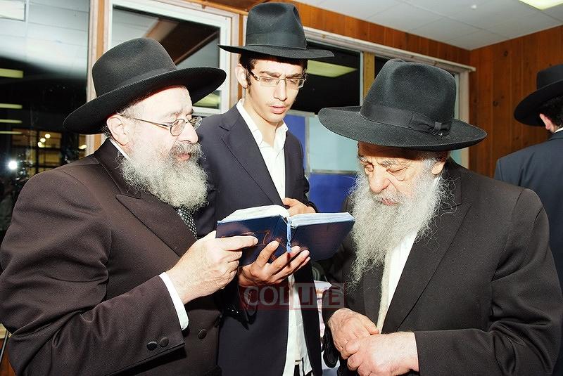Yarchei Kallah coordinator Rabbi Yehuda Ceitlin with brothers Mendy (L) and Baruch Schneur