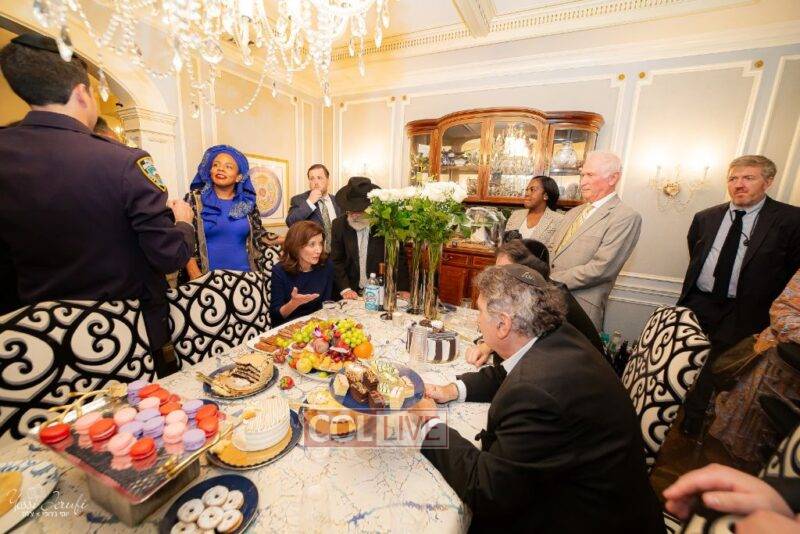 In attendance were Governor Kathy Hochul, Mayor Bill de Blasio, Brooklyn Borough President and Democratic Nominee for Mayor Eric Adams, Former Chief of Department and current Senior Advisor to the Mayor for COVID Recovery Terence Monahan, Councilwoman and Majority Leader Laurie Cumbo, Councilman and Democratic Nominee for Comptroller Brad Lander, Council Member Robert Cornegy, Councilmember Kalman Yeger, Democratic Nominee for City Council District 48 Steven Saperstein and his wife Elina, Chief of Department Rodney Harrison, Chief of Patrol Juanita Holmes, Deputy Commissioner for Community Partnerships Chauncey Parker, Special Agent Chris Donohue/FBI Civil Rights Division, Chief of Manhattan South Stephen Hughes, Chief of Office of Crime Control Strategies Frank Giordano, PBBS Deputy Chief Ruel Stephenson, PBBS Inspector Norman Grandstaff, 66 Pct Commanding Officer Jason Hagestad, 71 Precinct Commanding Officer Inspector Joe Hayward, Community Affairs Commanding Officer Deputy Inspector Richie Taylor, 81 Precinct Commanding Officer Billy Glynn, 78 Precinct Commanding Officer Captain Frantz Souffrant, Community Affairs Lieutenant Ira Jablonsky, Community Affairs Detective Mike Baratta, Community Affairs Detective Mohammad Amen, Inspector Max Tolentino, community Affairs Unit, Fire Department Chaplain Executive Vice President of the New York Board of Rabbis, Rabbi Joesph Potasnik, Advisor to Eric Adams’ 2021 Mayoral Campaign, Joel Eisdorfer, Williamsburg Satmar Community Leader Moishe Indig, Jake Adler Jewish Liaison for Gov. Hochul, Pinny Ringel Dep. Commissioner for CAU Mayors office, Pinny Hikind for Scott Stringer, David Kletszick from DA Gonzalez, Eli Slavin from Congresswoman Yvette Clarke, Yeruchim Silber /Agudas Israel of America, Jonathan Shabsheikhes – rep. AG Letitia James.