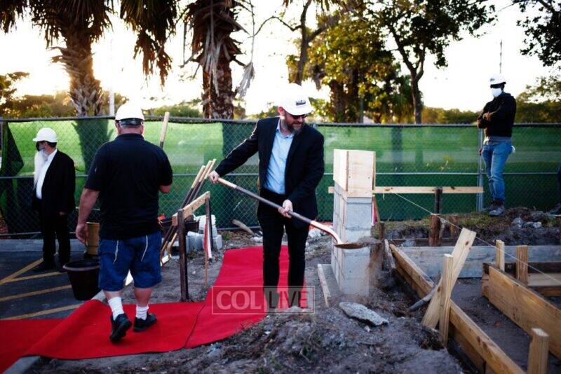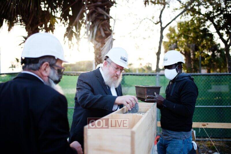 Head Shliach of Coral Springs, Rabbi Yossi Denburg was honored with placing the first stone, followed by Dr. Sandra Lilienthal and Rabbi Yossi Biston, Director of Chabad of N. Broward and South Palm Beach.