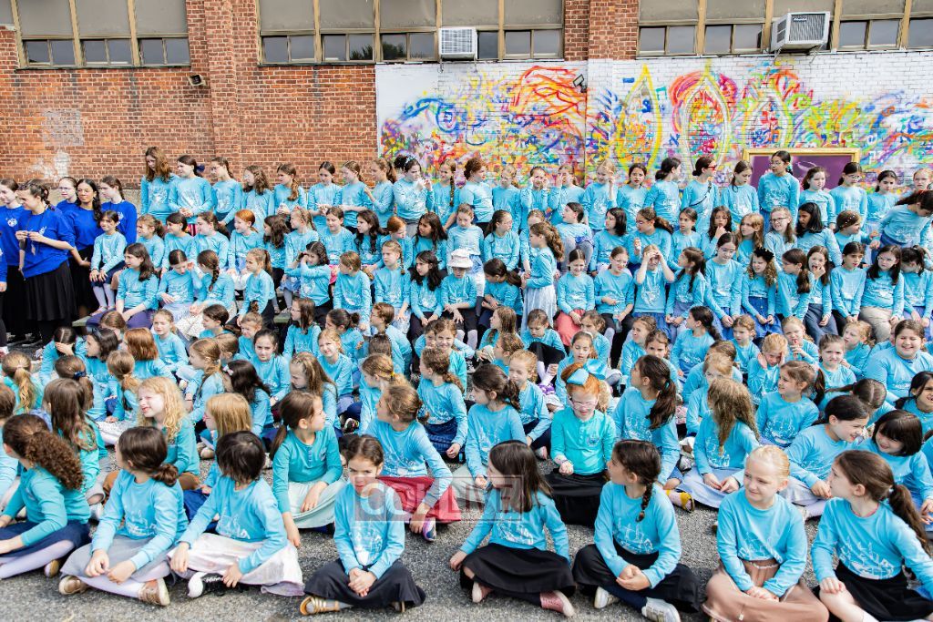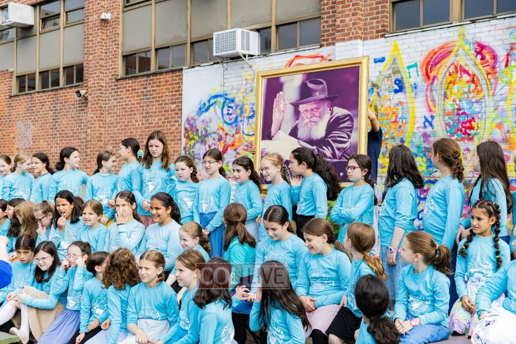 The many happy campers of the Bais Rivkah Day Camp of Crown Heights gathered with staff members on Thursday to take a group photo to remember the summer season of 5783 (2023). Photos