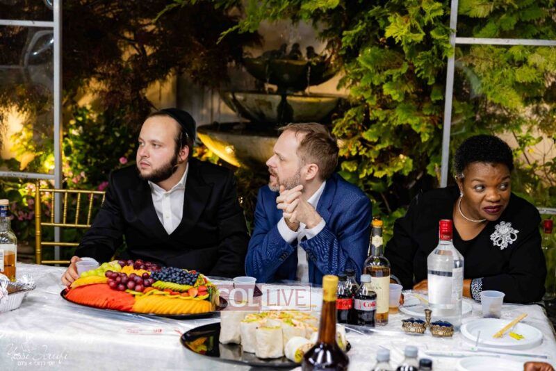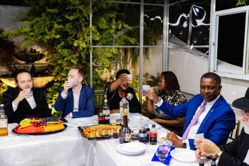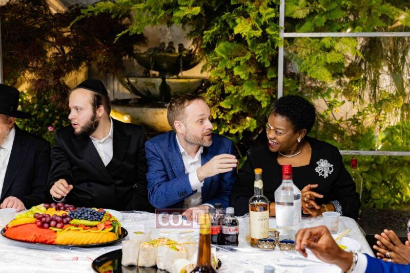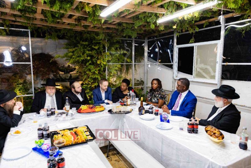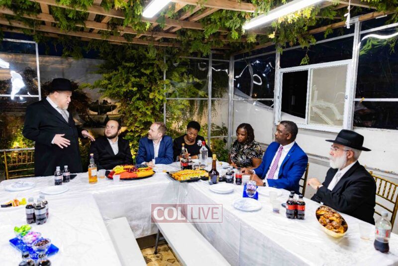 In the spirit of the holiday of Sukkos being a time associated with the seventy nations of the world, Crown Heights activist Rabbi Chanina Sperlin hosted a gathering at his sukkah on Monday.