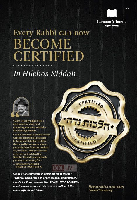 Finally, Lemaan Yilmedu has created a program to cover every aspect of Hilchos Taharah with a focus on practical psak and shimush, taught by Crown Heights Rov, Rabbi Tuvia Kasimov, a well-known expert in this field and author of the noted sefer Divrei Tohar.