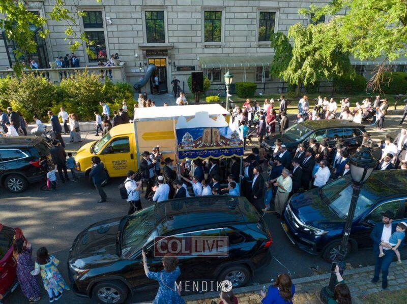 The event began with the writing of the final letters in the Karnowsky home, then the Tahaluch went to Oholei Torah on Eastern Parkway and hakofos and a seudas Mitzvah were held in Heichal Shmuel, a shul in the dining hall of the moisad dedicated in Shmuel’s memory.