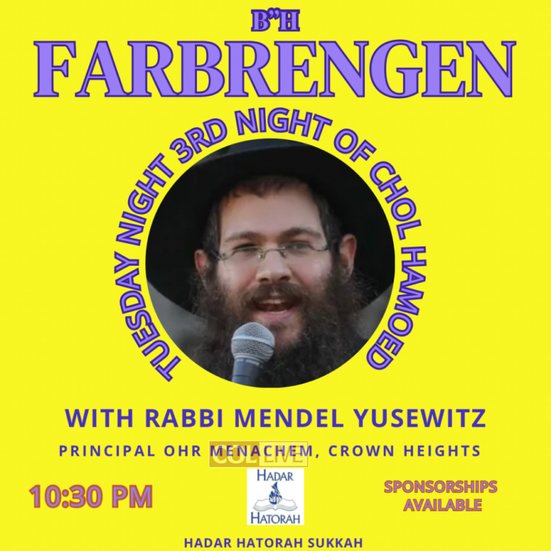 The first three days of Chol HaMoed Sukkos Hadar Hatorah hosted three epic farbrengens that welcomed many new faces to the sukkah. The first night of chol hamoed Hadar Hatorah Alumn and mashpia Tuvia Bolton inspired the yeshiva followed by a phenomenal Farbrengen with Rabbi Moshe Rom from Tzfas on the second night. Last night, Rabbi Mendel Yusewitz, principal of Ohr Menachem school in Crown Heights held a incredibly inspirational Farbrengen. We look forward to tonight’s Farbrengen with Rabbi Shmuel Yeshayhu, Rabbi of the Ohel Yaakov Community Kollel of Vancouver at 10:00pm. He is well known for his ability to make spirituality relevant to all people in all walks of life