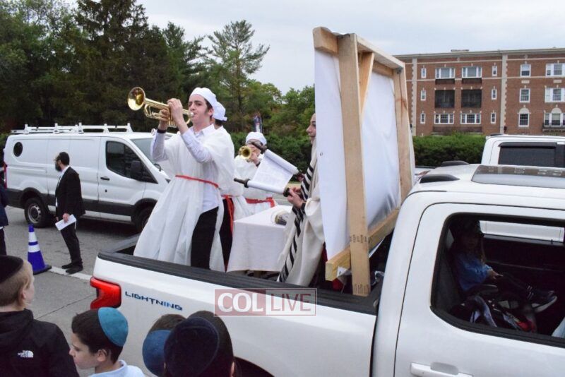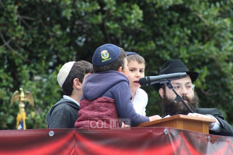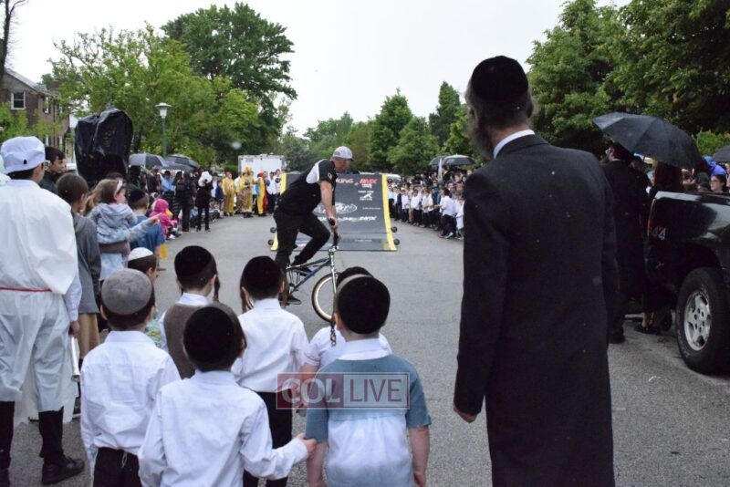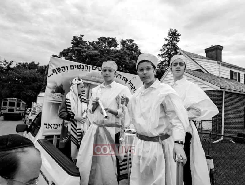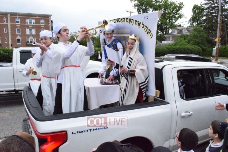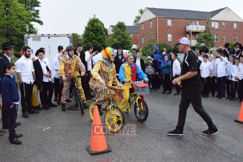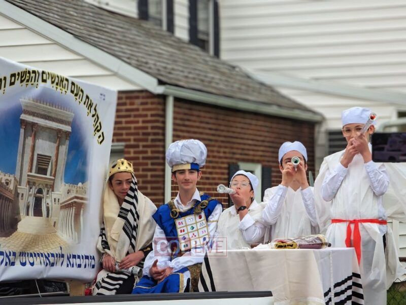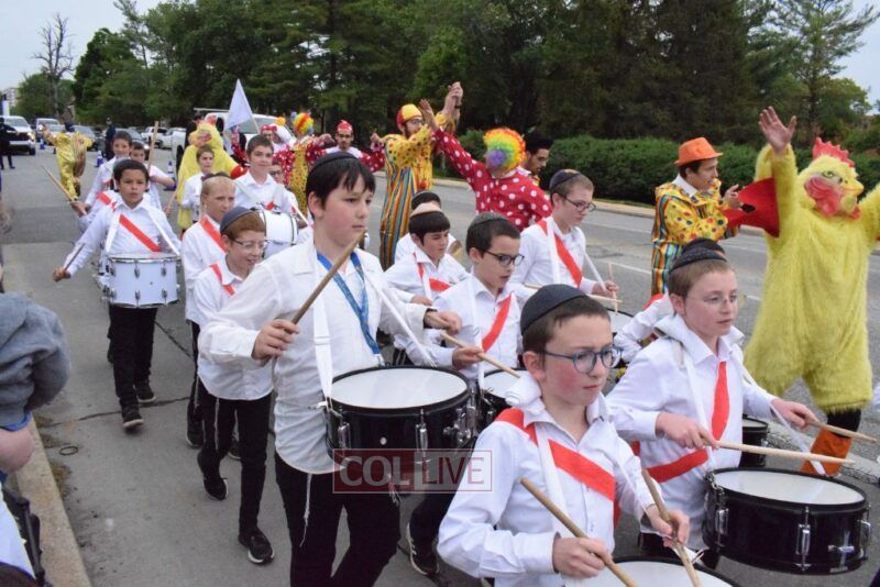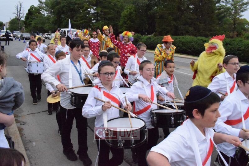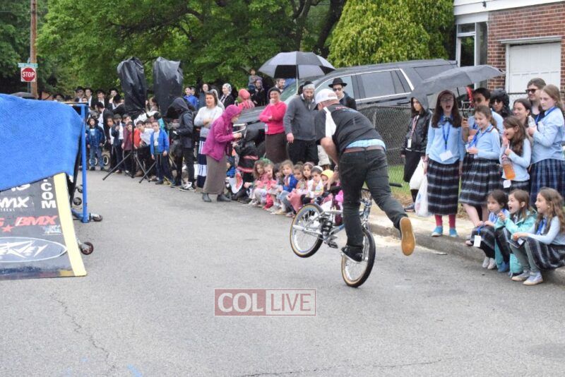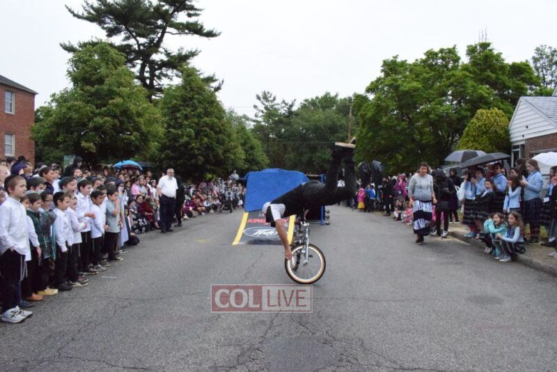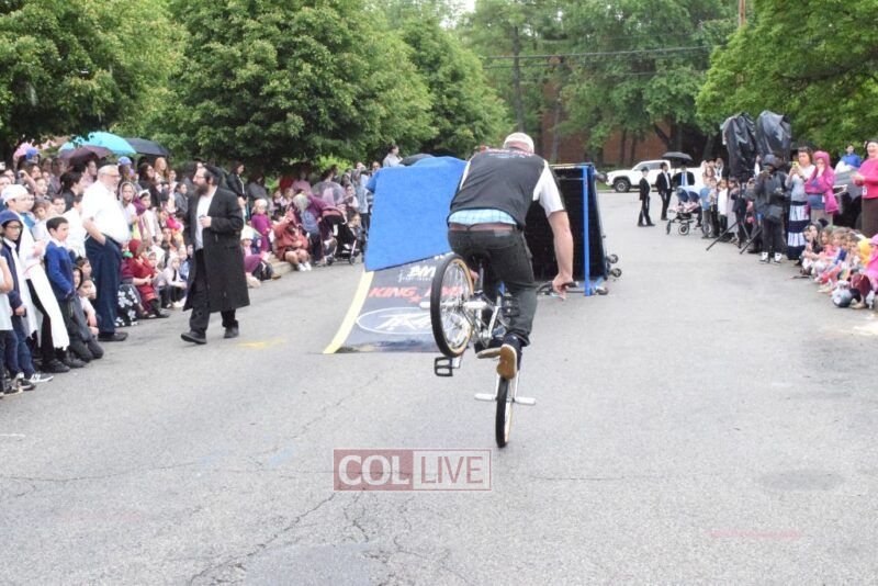 The grand event was held at the replica 770 building being built for the Baltimore Yeshiva, and included the 12 Pesukim, hearing a Sicha of the Rebbe from the Hakhel year 5727, Cheder Marching Band, creative floats by Mesivta and Zal Yeshivas, and an exciting BMX bike show.