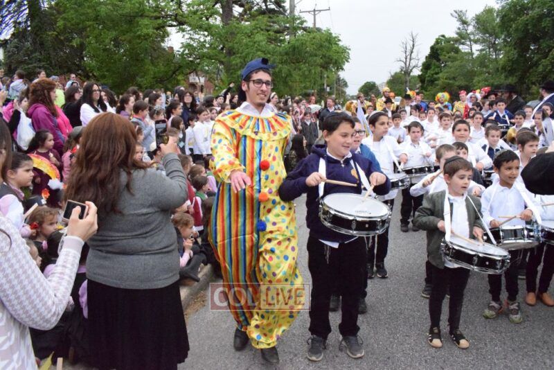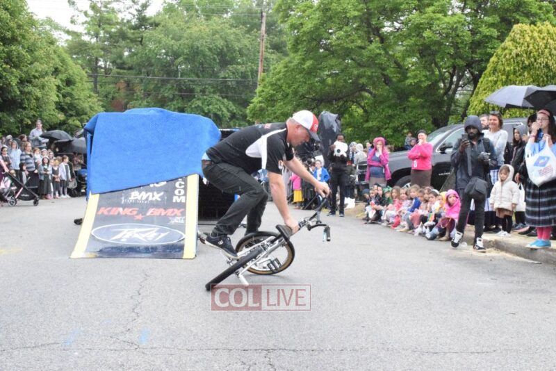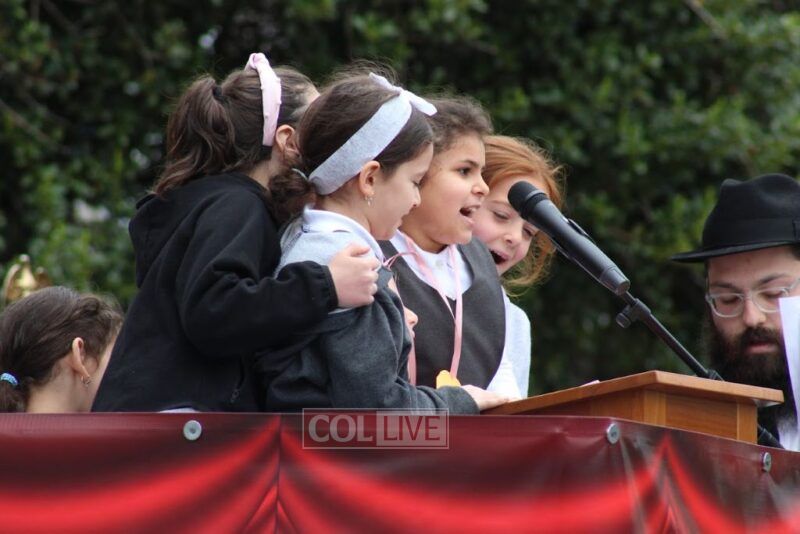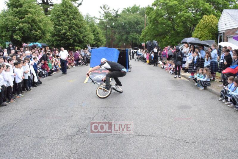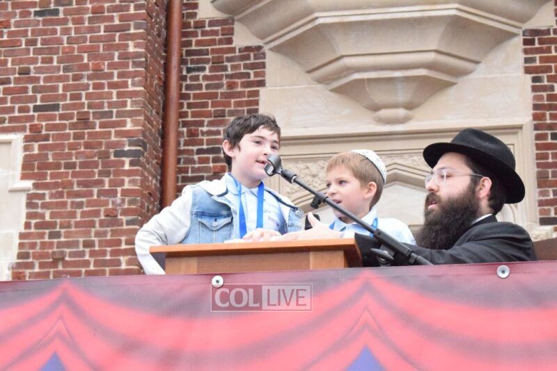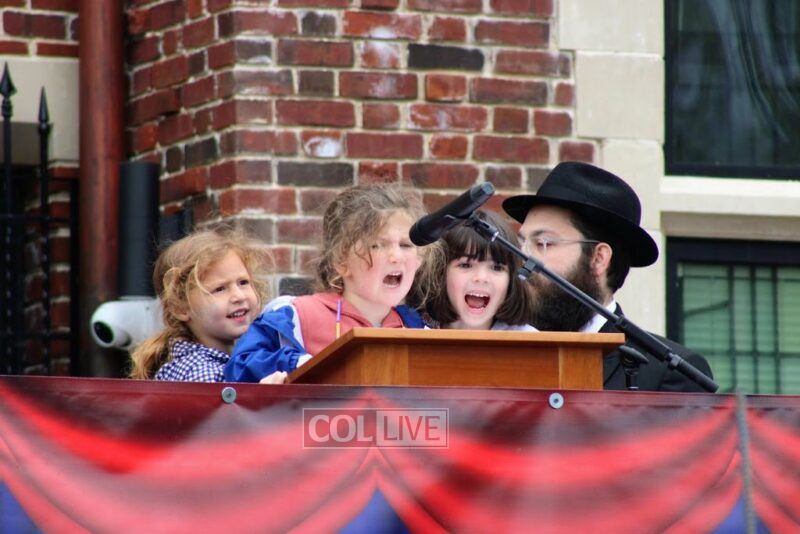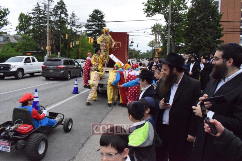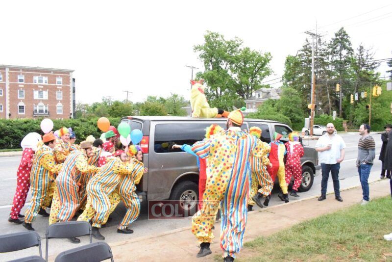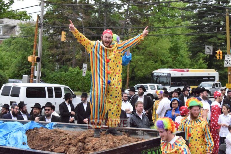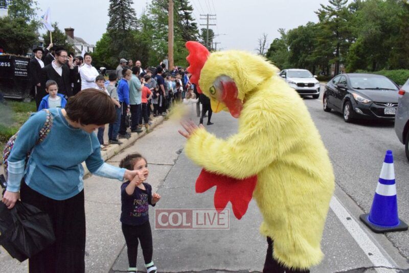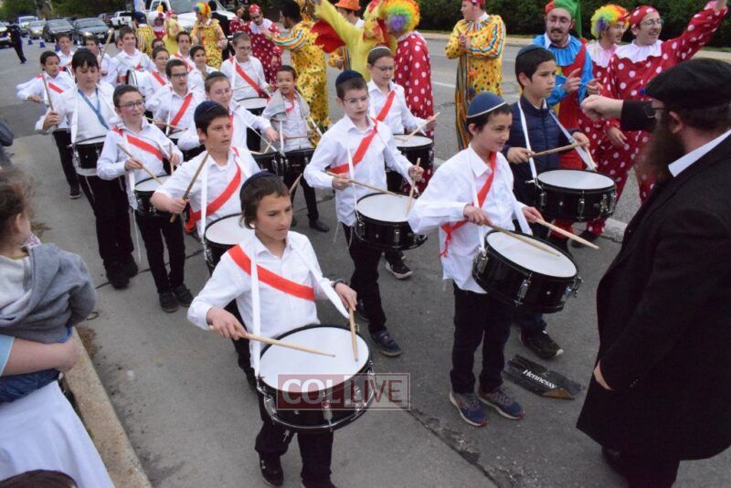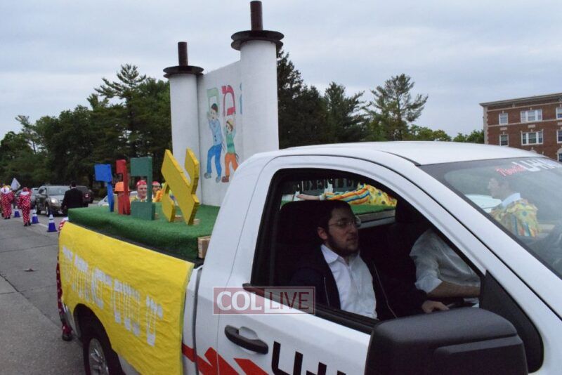 The grand event was held at the replica 770 building being built for the Baltimore Yeshiva, and included the 12 Pesukim, hearing a Sicha of the Rebbe from the Hakhel year 5727, Cheder Marching Band, creative floats by Mesivta and Zal Yeshivas, and an exciting BMX bike show.