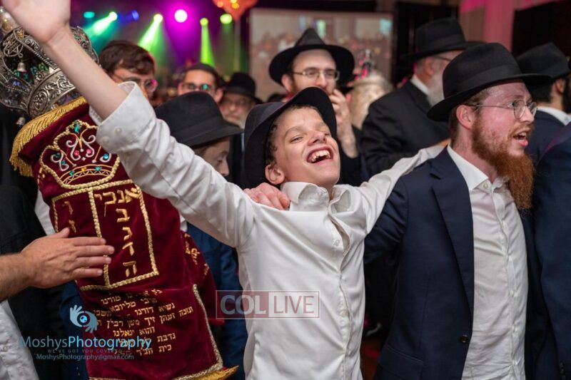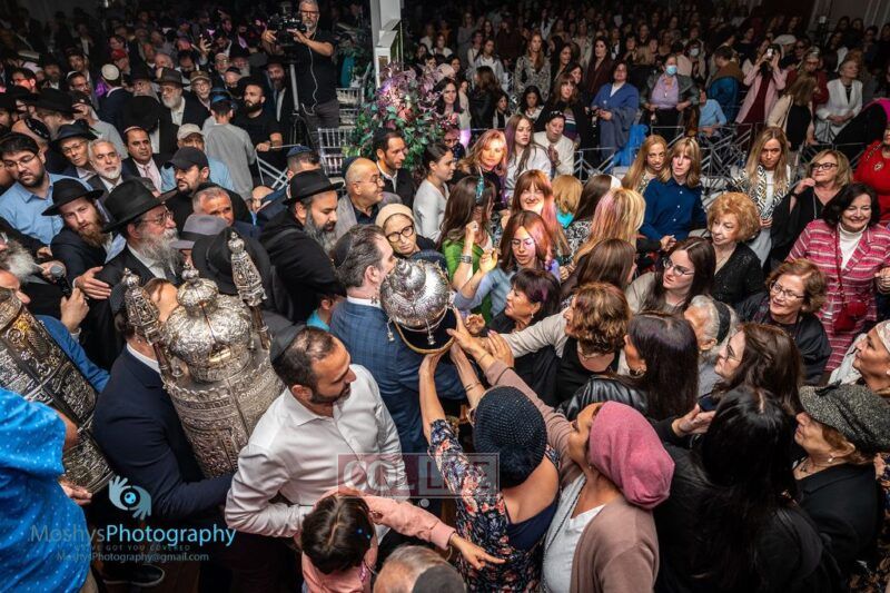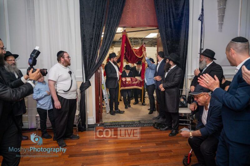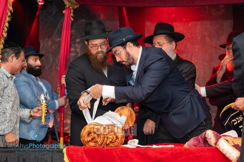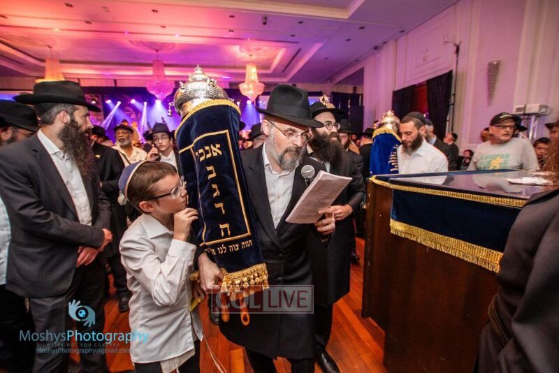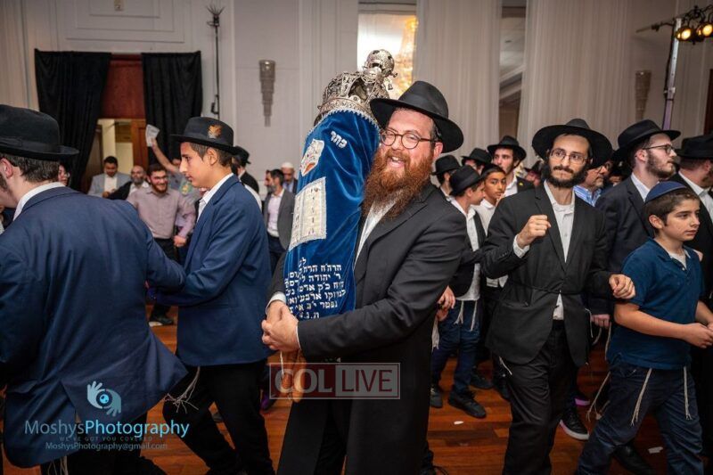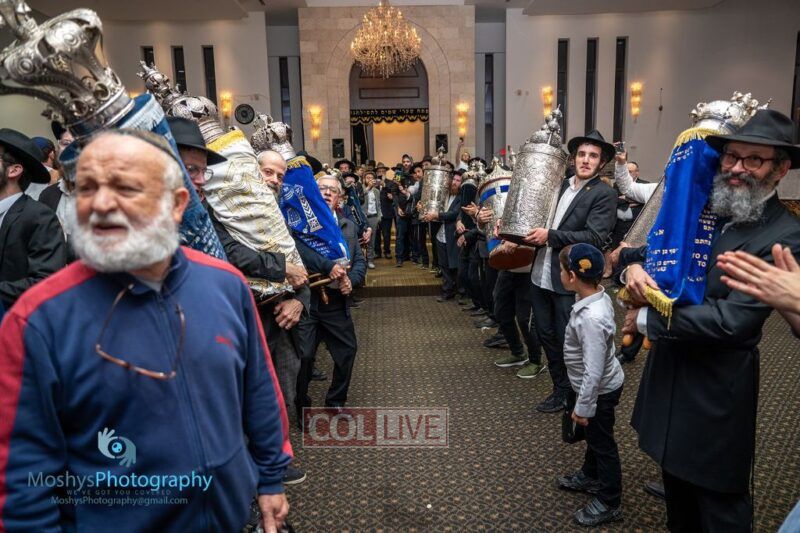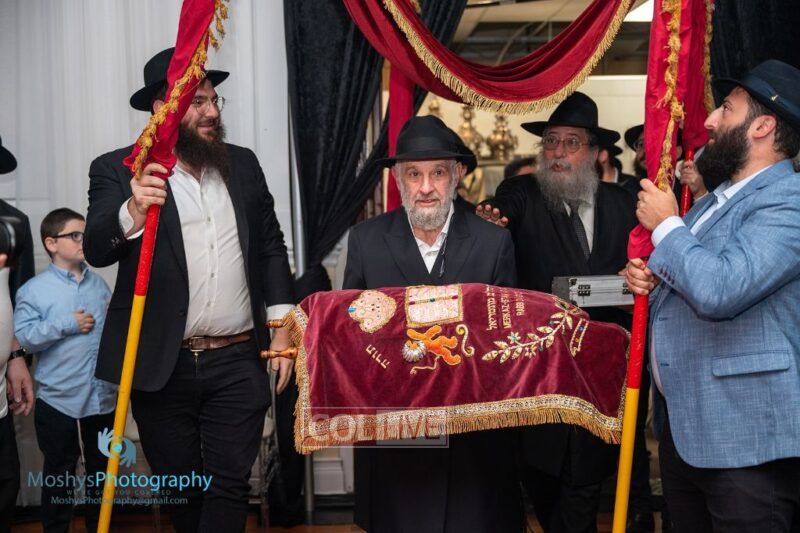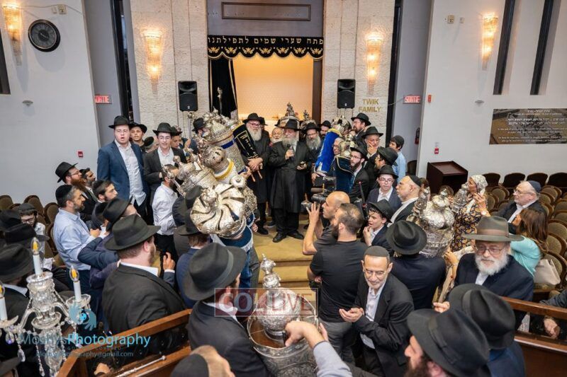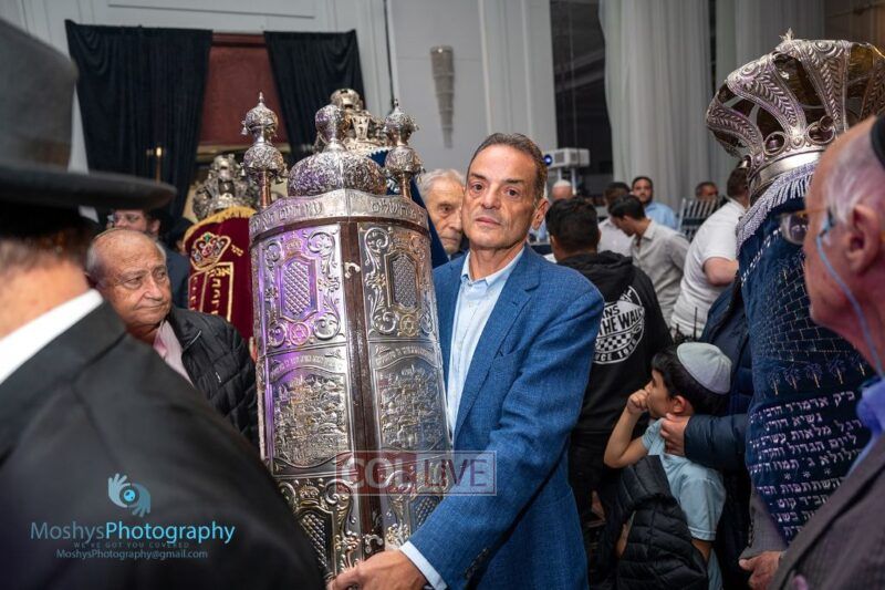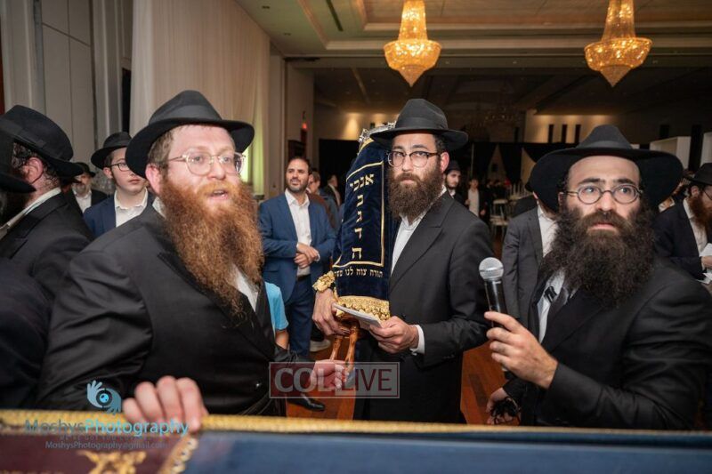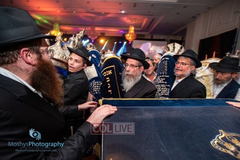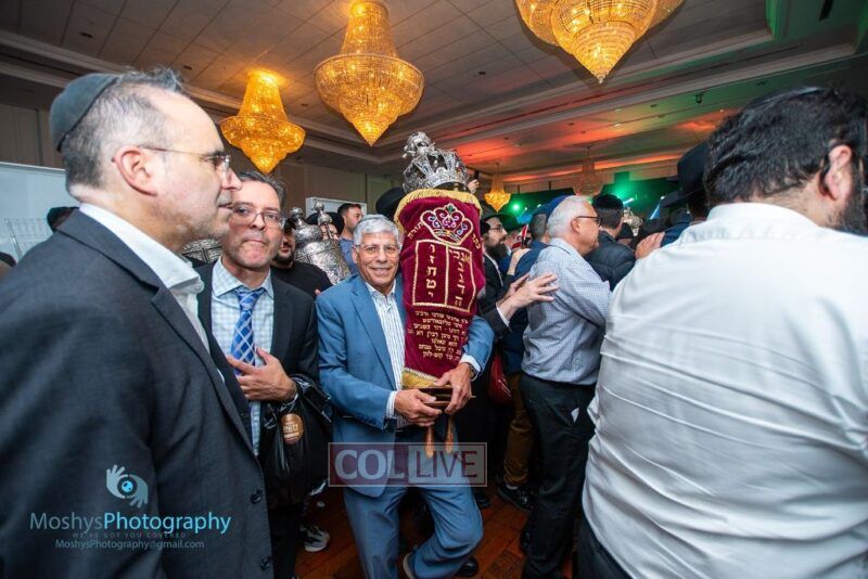 The Torah was brought out by the children and grandchildren of Julie and Yitzchok Gniwisch of Delmar Jewelers, who were principal co-sponsors of the event.