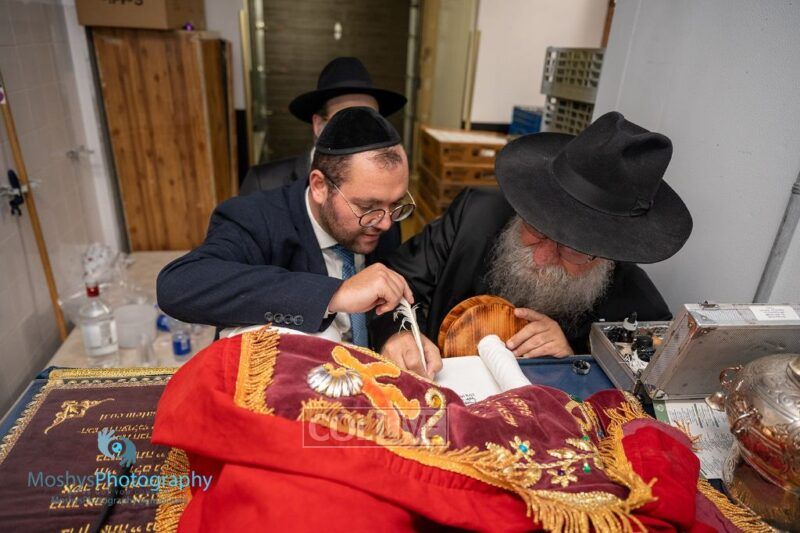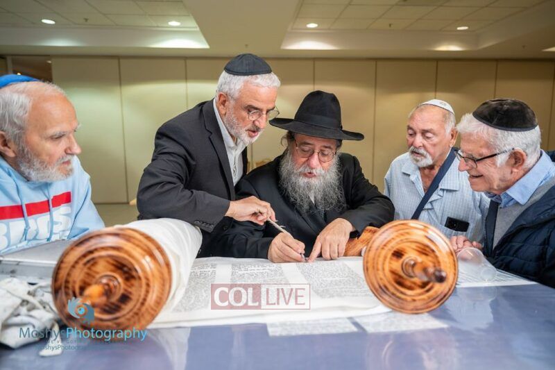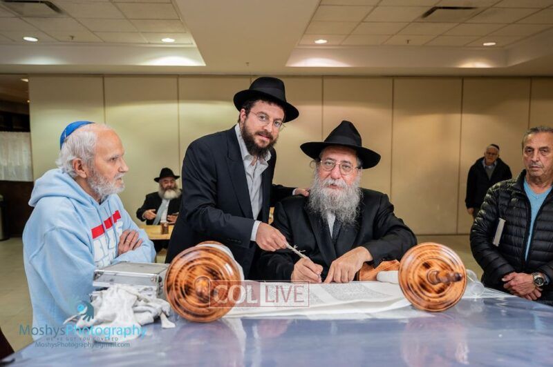 Rabbi David Cohen was the sofer and also inspired the crowd with Minhagim and instructions.