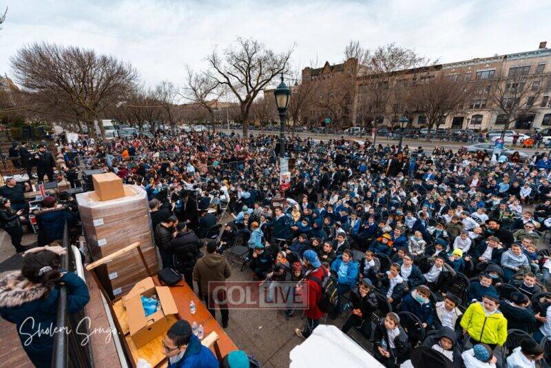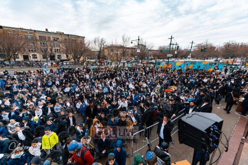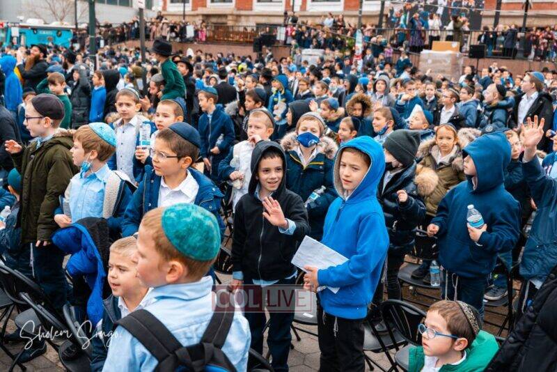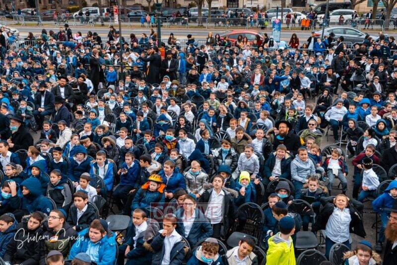 Thousands of children gathered for a rally at 770 Eastern Parkway on Wednesday to mark the auspicious day of Yud Alef Nissan, the 119th birthday of the Rebbe. Photos