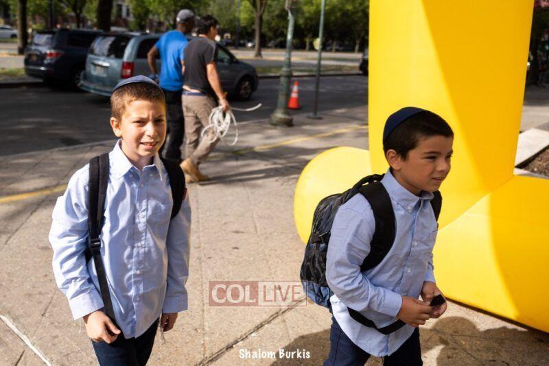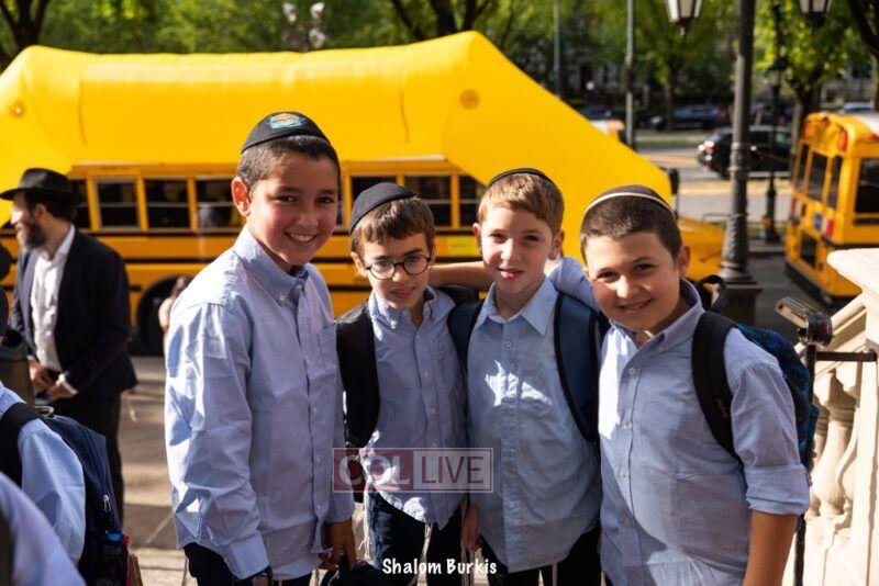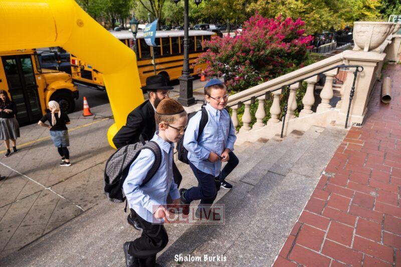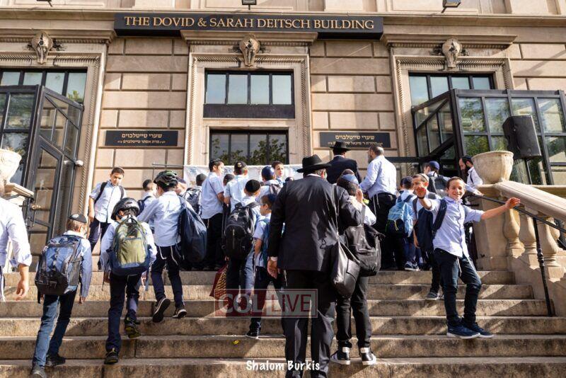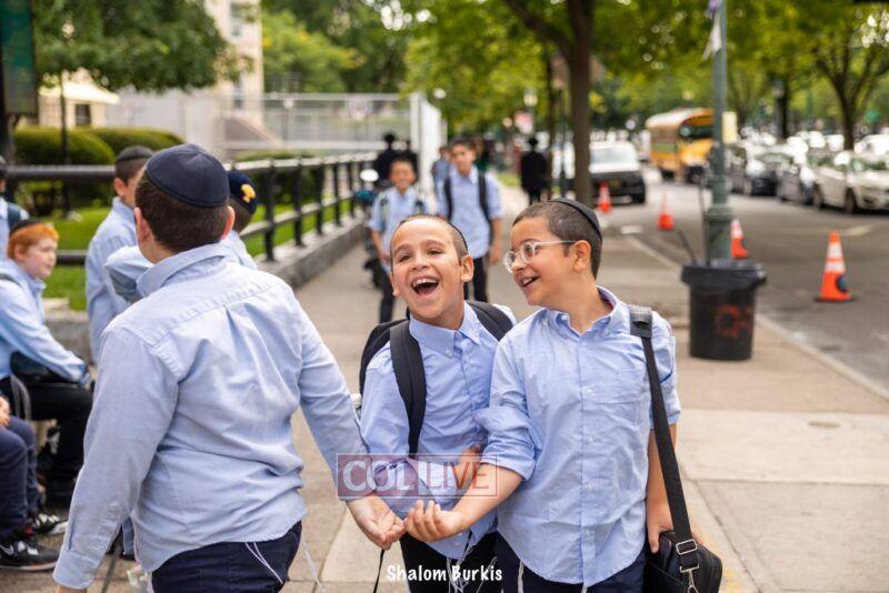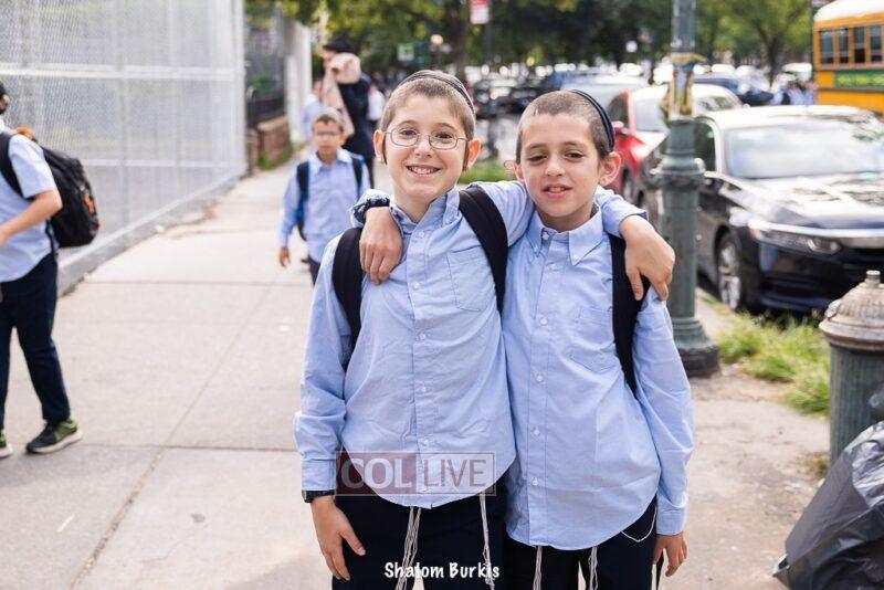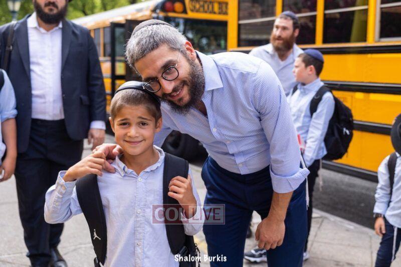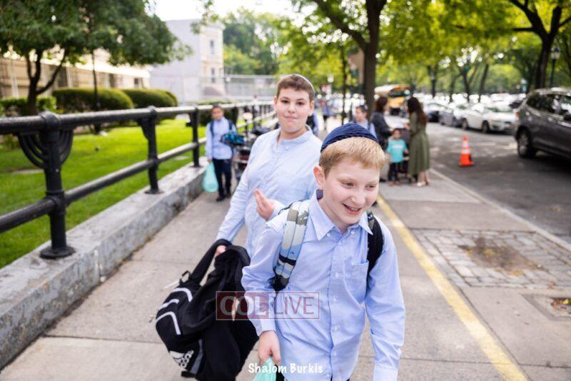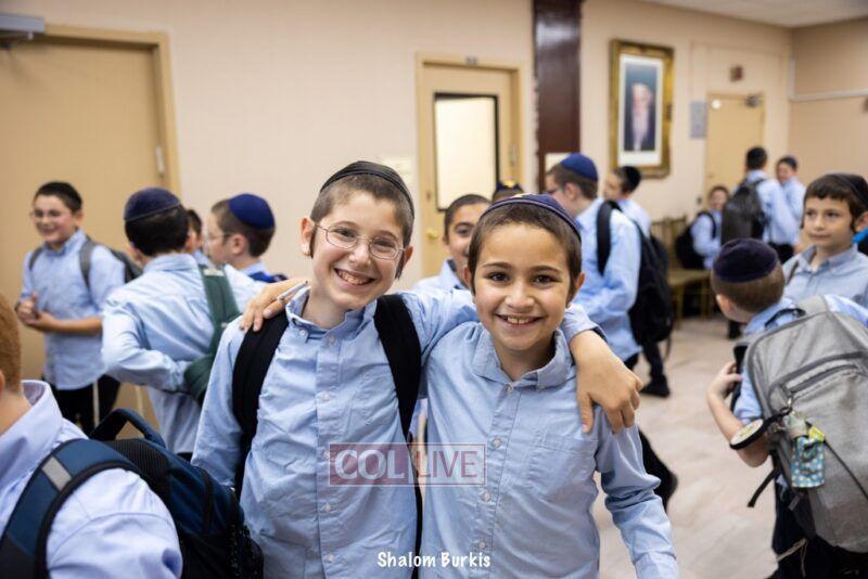 Smiling students and staff arrived excited for the first day of school at Oholei Torah in Crown Heights on Tuesday. Photos