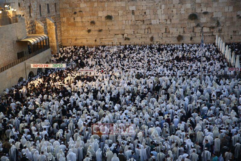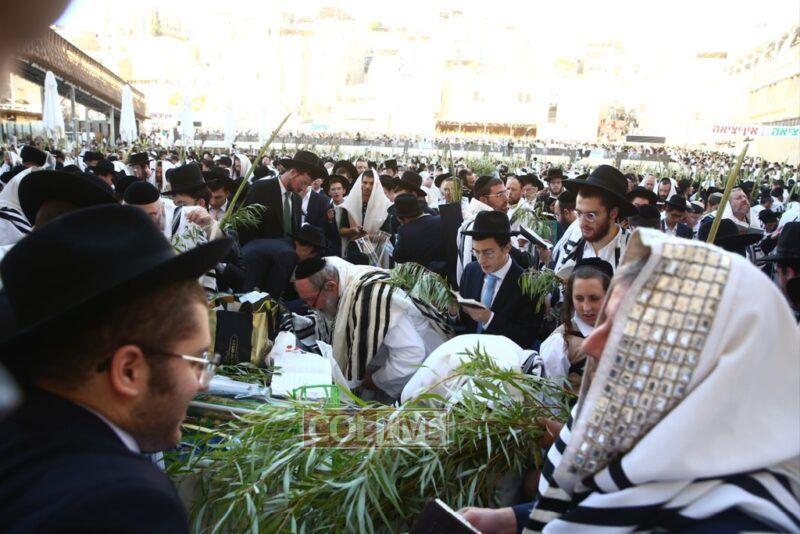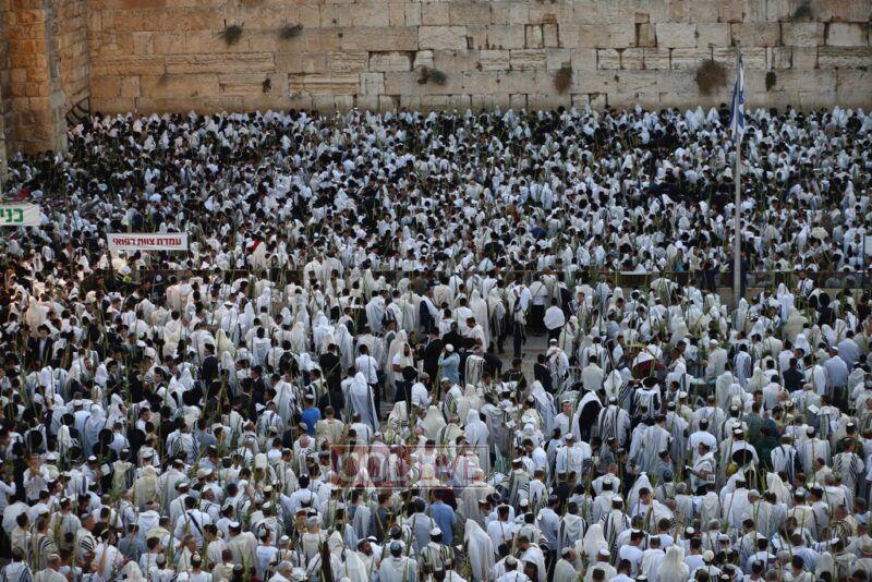 Thousands came to the Kotel in Jerusalem for the early morning Shacharis of Hoshana Rabbah on Sunday. Photos, Video