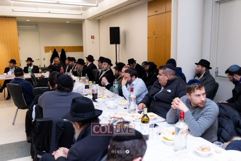 As soon as Rabbi Taub finished the story, one of the attendees stood up and announced that he was the boy’s uncle and the one who had actually wrapped the Tefillin on the man in the story. Rabbi Taub immediately invited him to retell the story from his own perspective, which he did, and then he shared a photo of the man putting on Tefillin, bringing the entire room to life in a moment of unmistakable hashgacha pratis, the kind that only seems to happen at a Yud Tes Kislev farbrengen.
