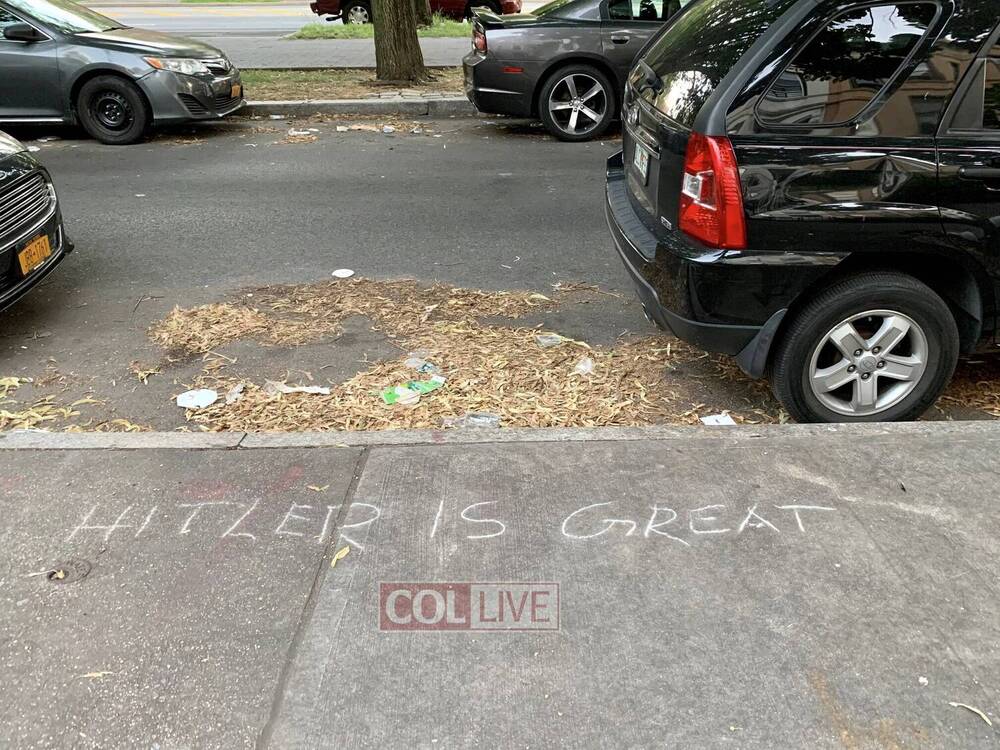 A Jewish resident discovered the message “Hitler is great” written in chalk on a sidewalk on Eastern Parkway, between New York and Nostrand avenues.