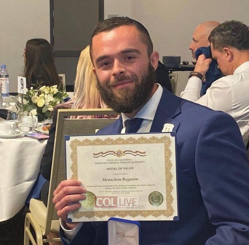 Menachem, who currently lives in Tarzana, received the prestigious Medal of Valor from The State of California Emergency Medical Services Authority (EMSA) on May 23rd for his heroism and courage under extreme circumstances. This recognition is the first in Hatzolah of LA’s history, and Menachem is the youngest of four recipients this year, and the youngest ever to receive such an award at just 23 years old.