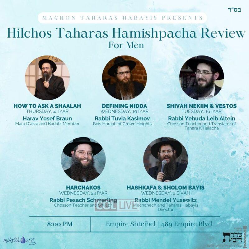 Machon ‘Taharas Habayis’ has announced a new Halacha series for married men focusing on the Halachos and Hashkafa of Hilchos Taharas Hamishpacha.