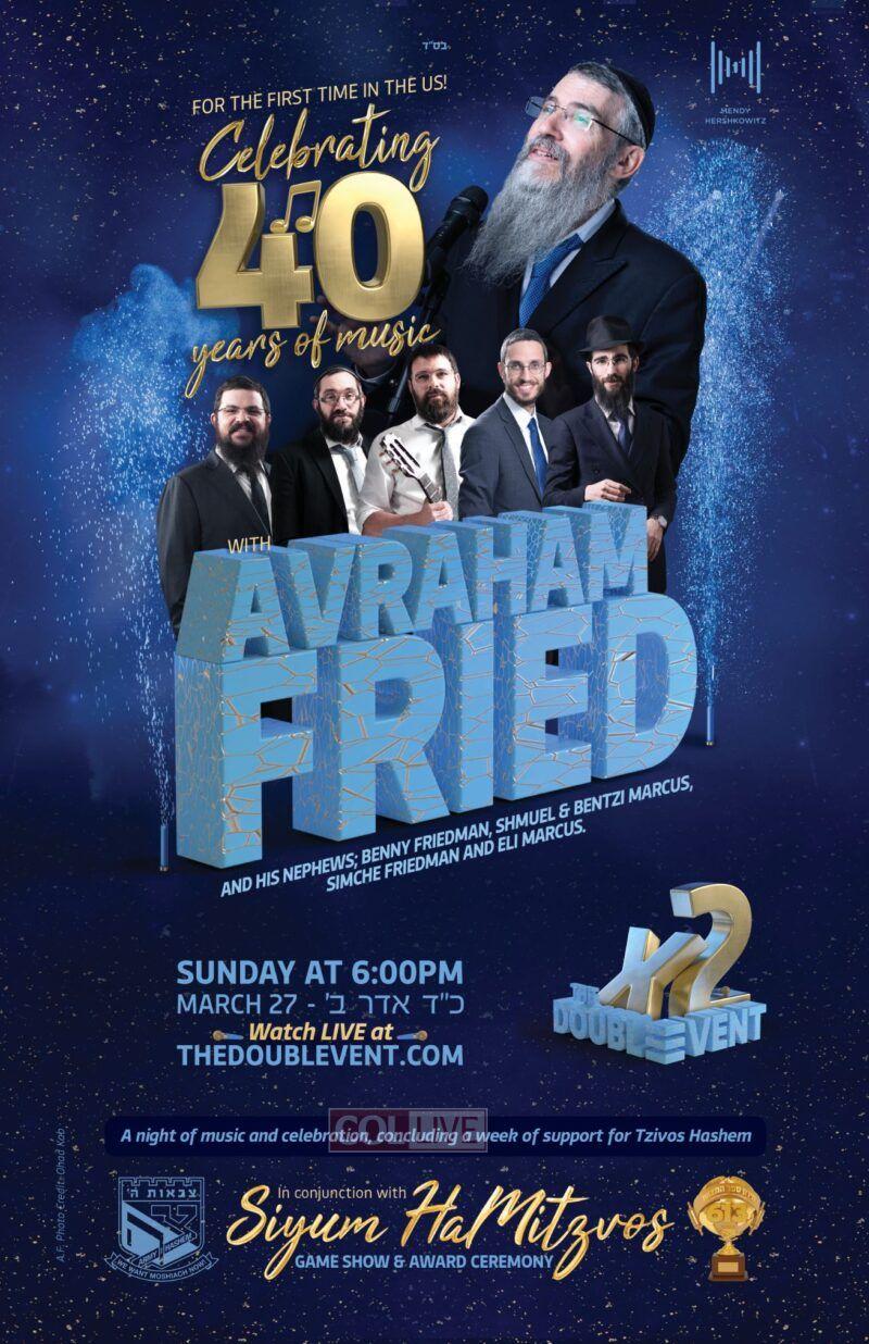 The Double Event will be a full-on concert celebrating 40 years of Avraham Fried’s music.