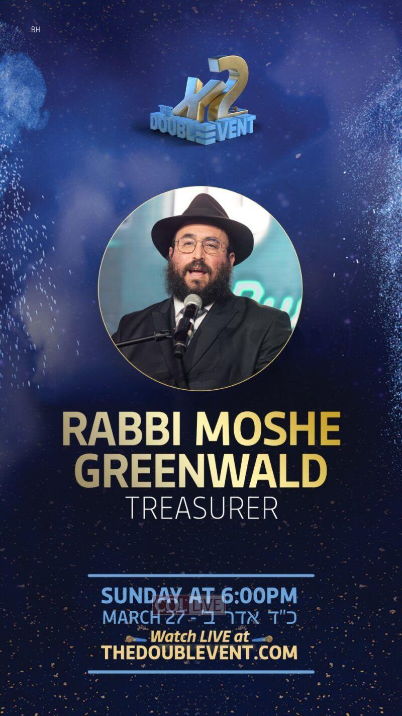 Tzivos Hashem has announced the Host and Treasurer of Sunday’s highly anticipated Double Event.