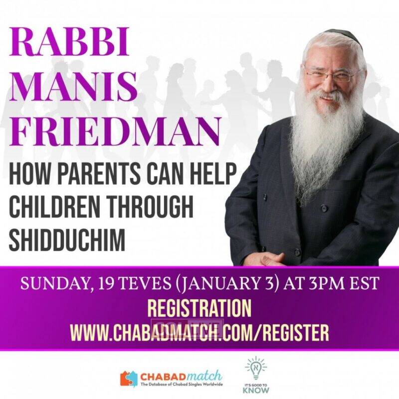 ChabadMatch to present a FREE Zoom Lecture for parents with Rabbi Manis Friedman.
