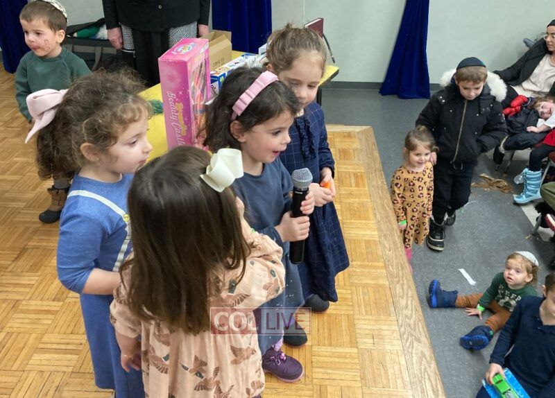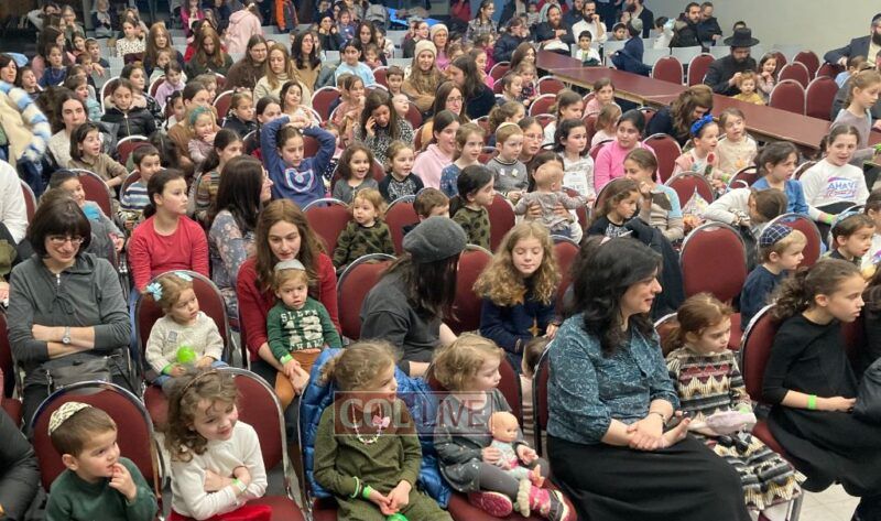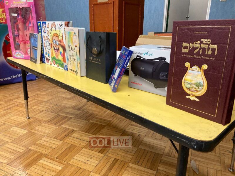 The program concluded with a Hakhel gathering at which the first Chanukah candle was lit on a giant Menorah, and the 12 Pesukim were recited. Each child received a Dreidel, coins for Tzedoko and Chanukah Gelt. Many valuable prizes were raffled off.