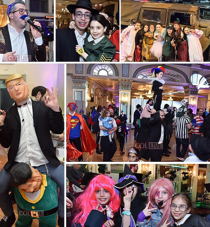 Colorful costumes were in sight at the main Shul of 770 Eastern Parkway as hundreds gathered Wednesday night to hear the Megillah. Photos