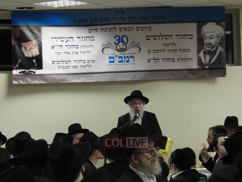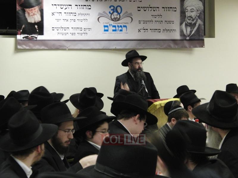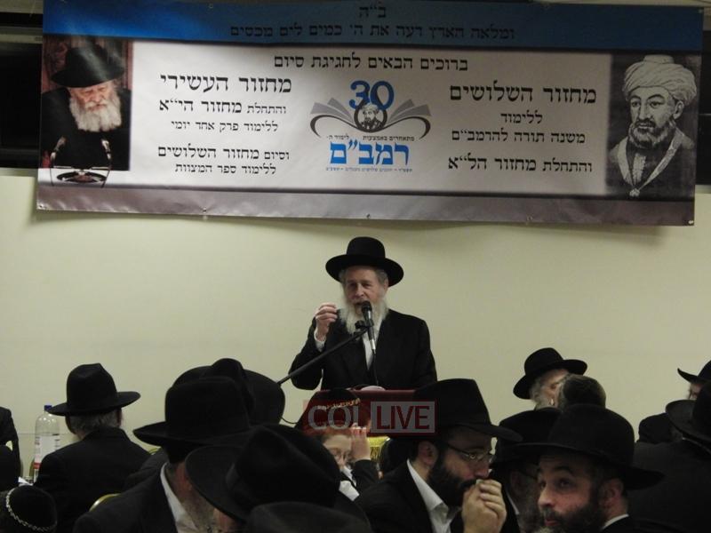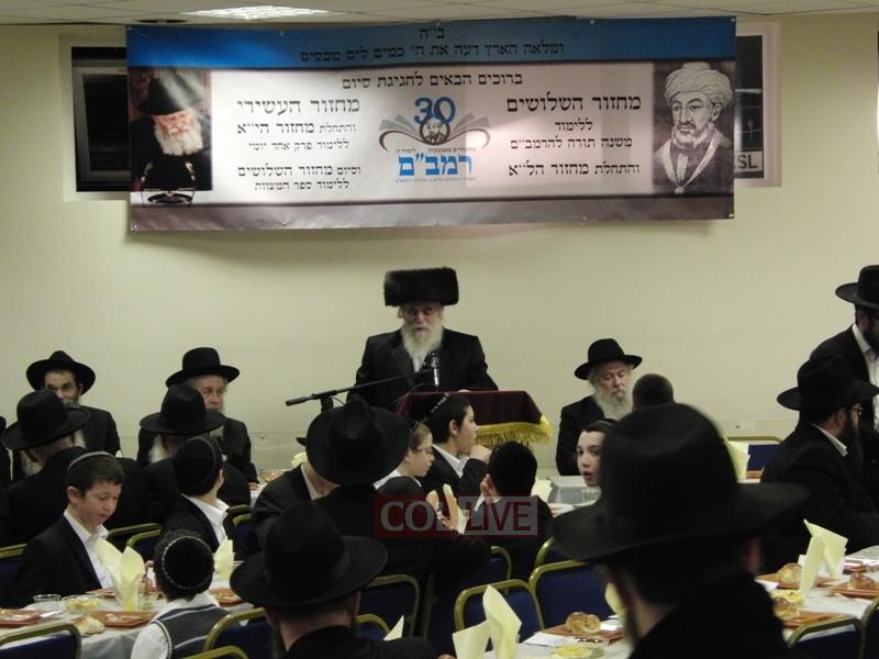 The Siyum of the 30th cycle was made by the Rosh Yeshiva of Yeshiva Gedolah and Rav of Chabad of Northwest London, Rabbi Yitzchok Meir Hertz, who then went on to explain some points of the Rambam based on a Sicha of the Rebbe.