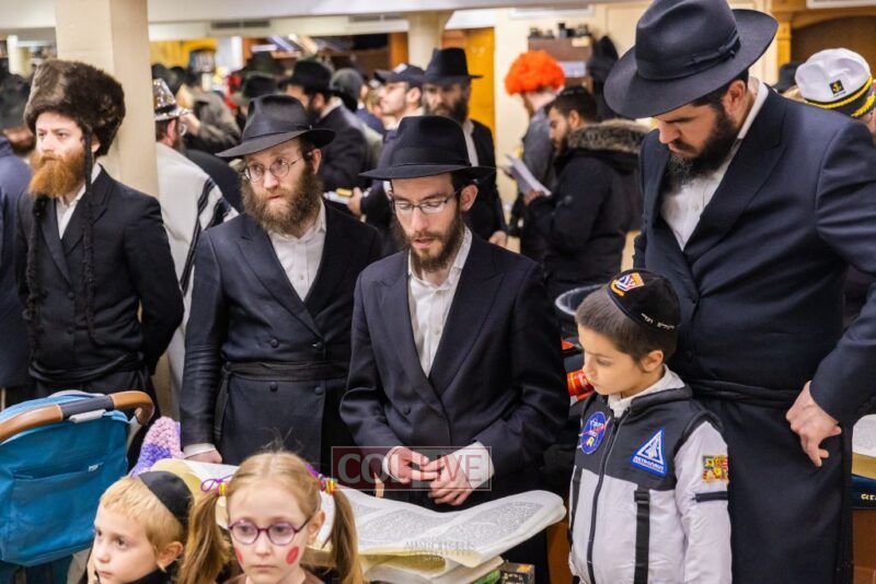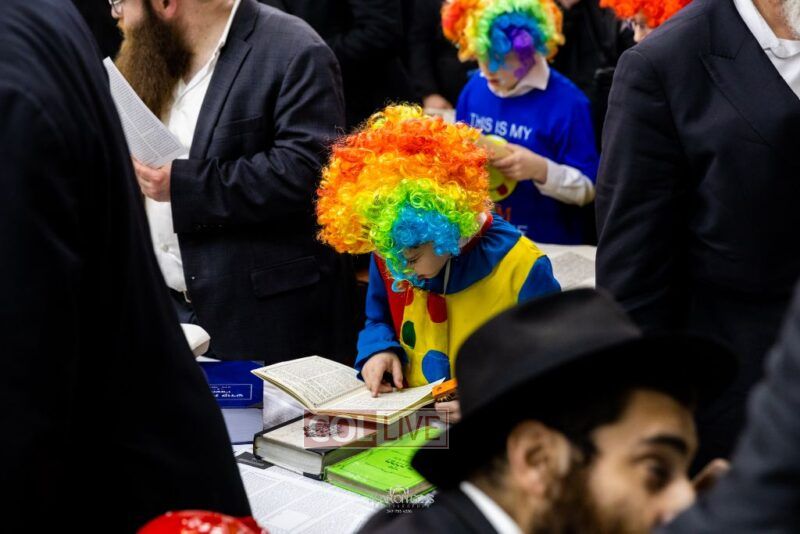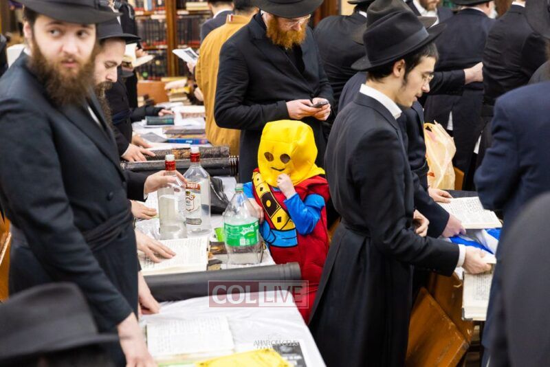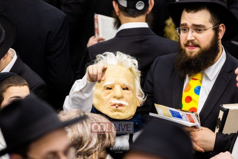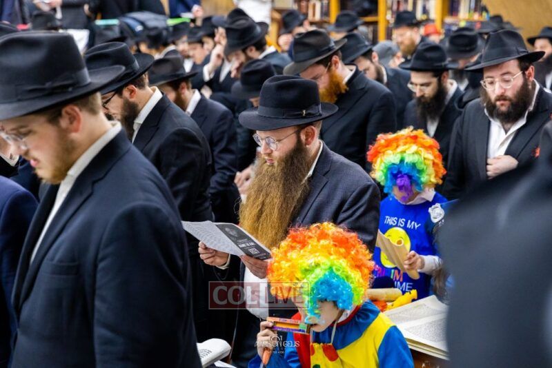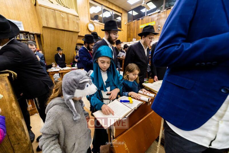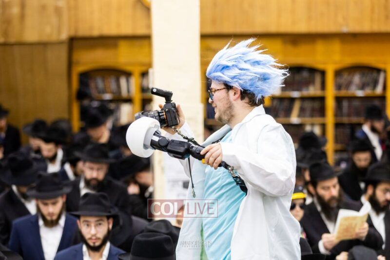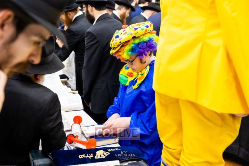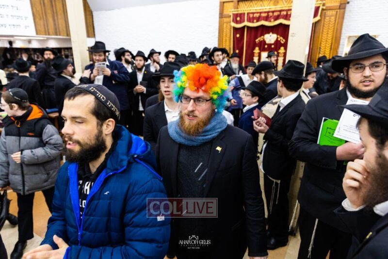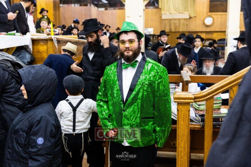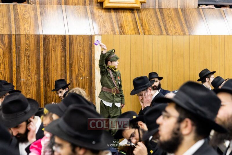 Colorful costumes were seen at 770 Eastern Parkway during the Megillah reading on Motzei Shabbos, Purim night. Photos, Video