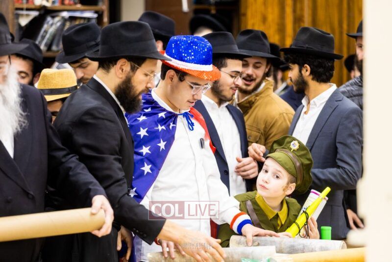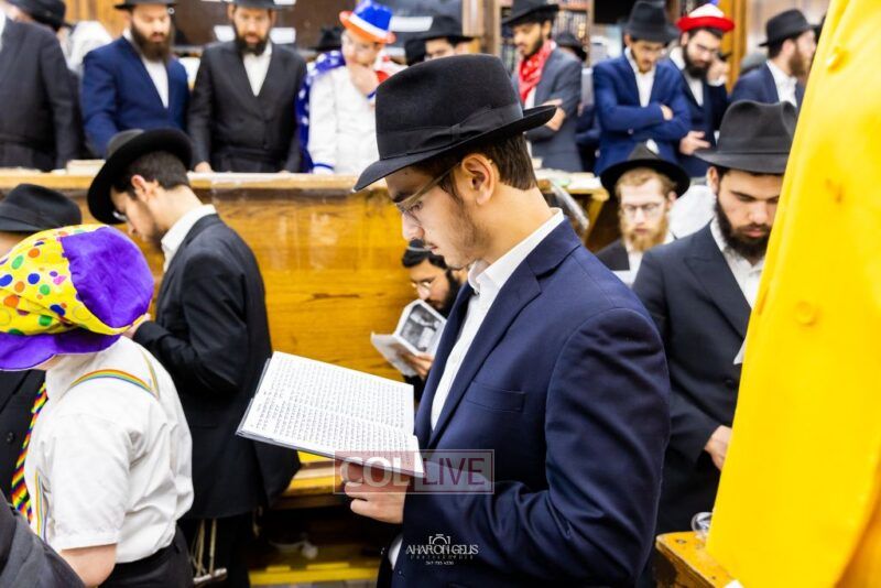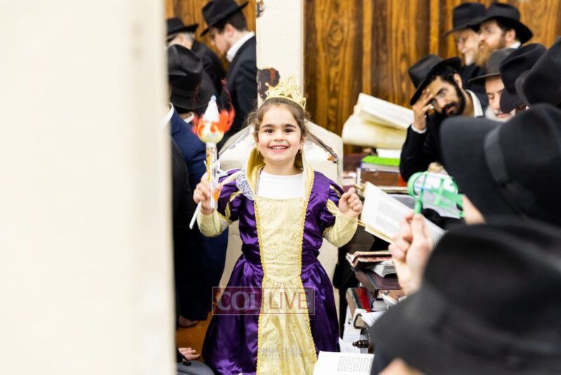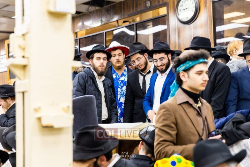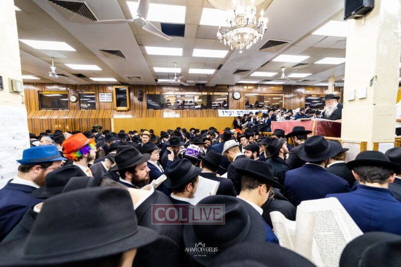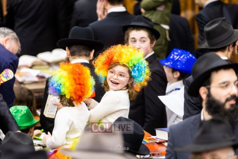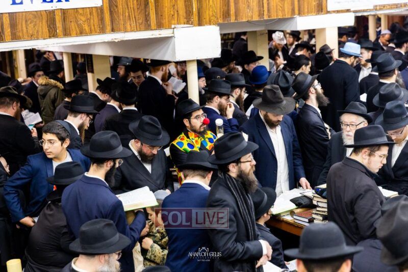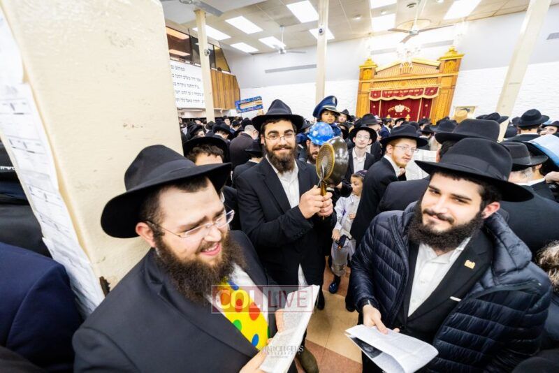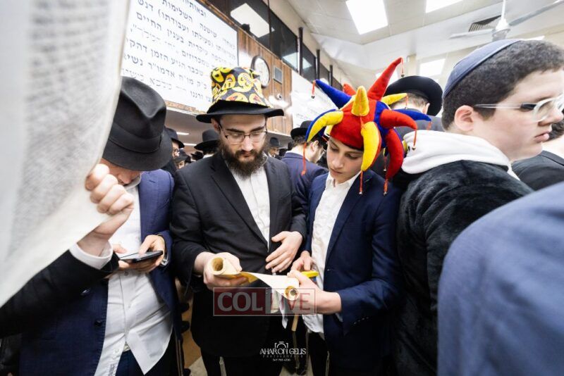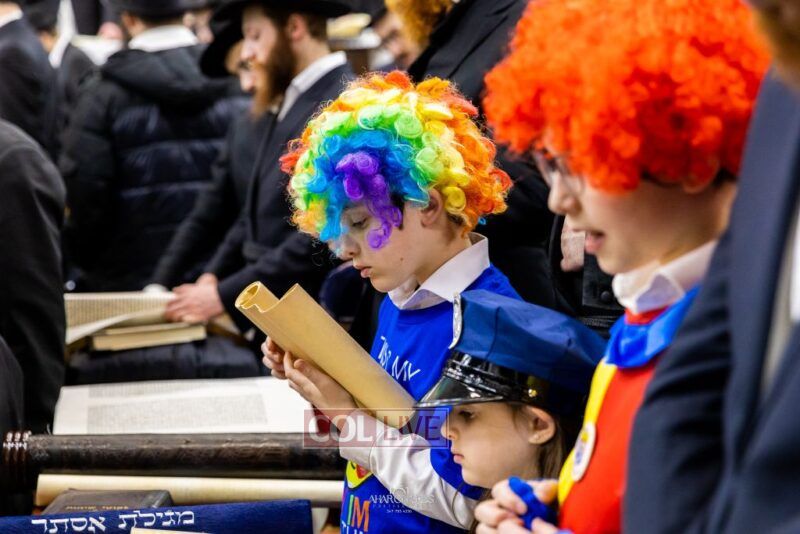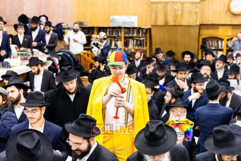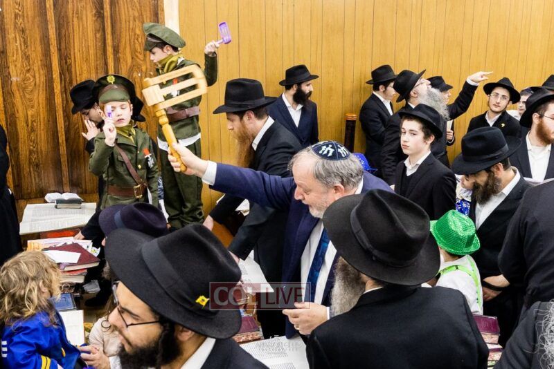 Colorful costumes were seen at 770 Eastern Parkway during the Megillah reading on Motzei Shabbos, Purim night. Photos, Video