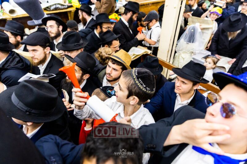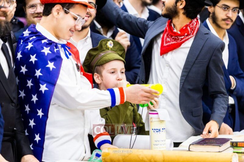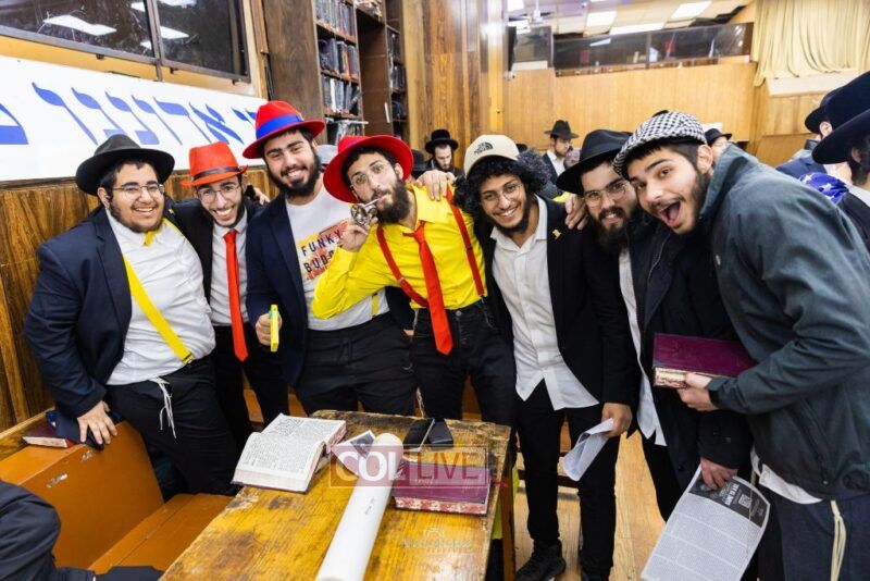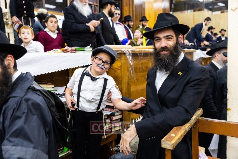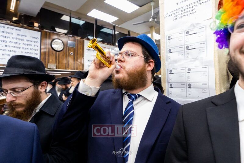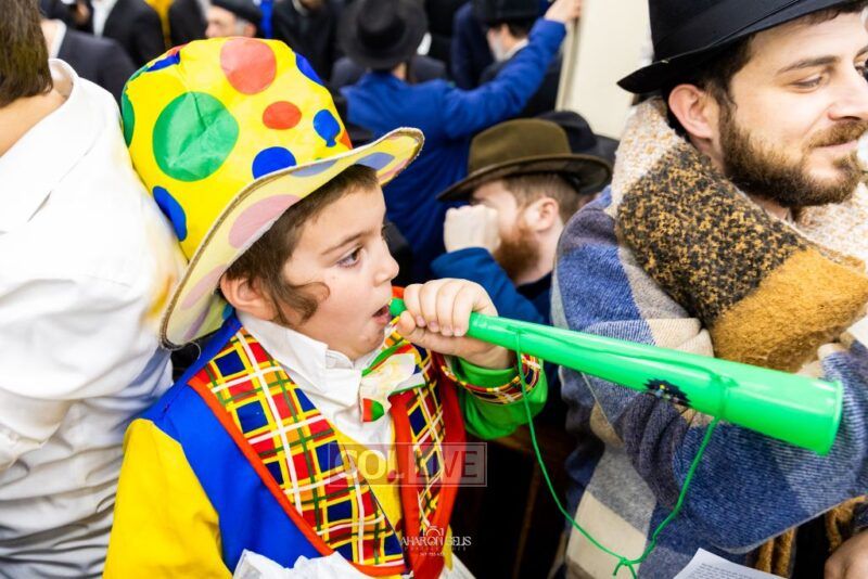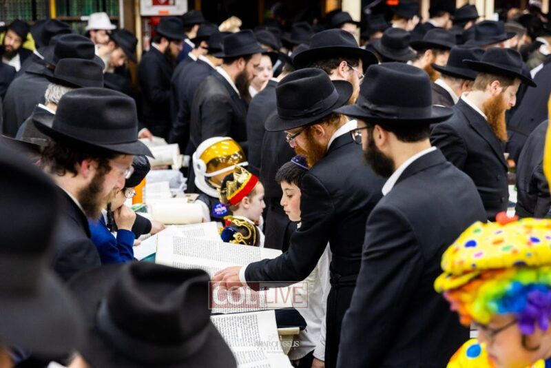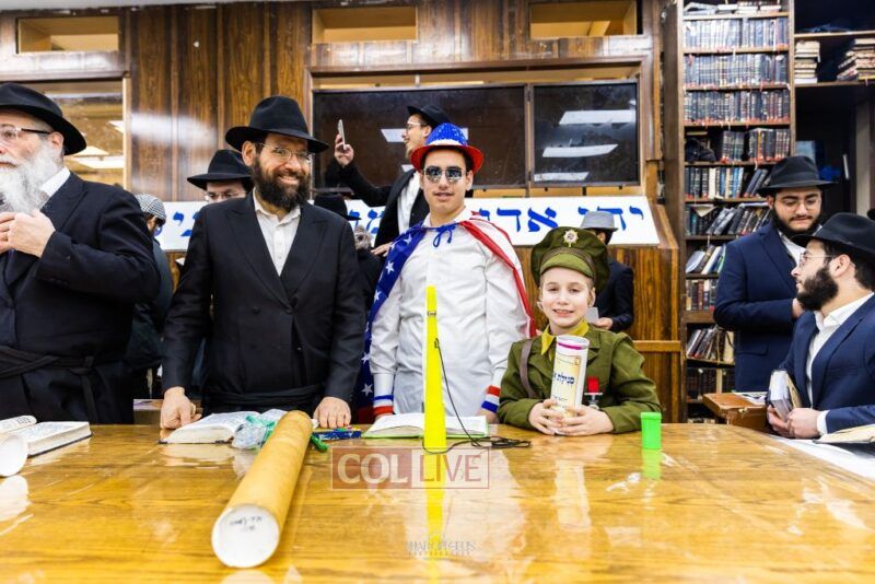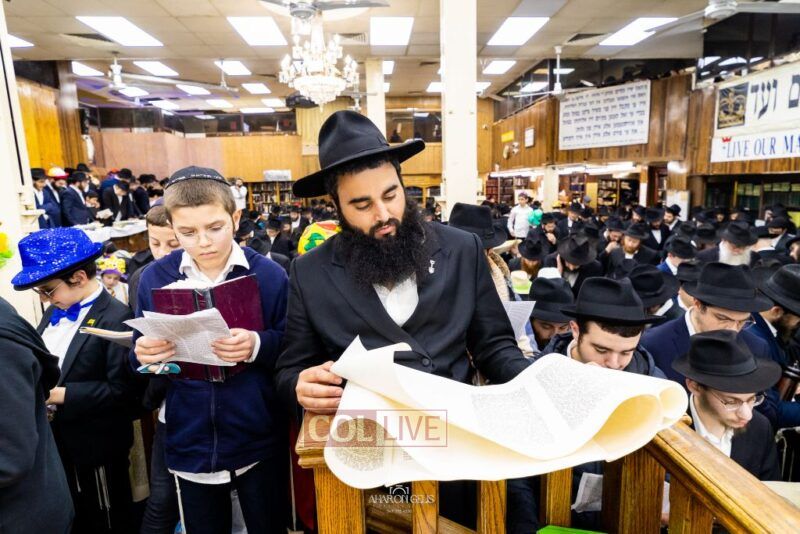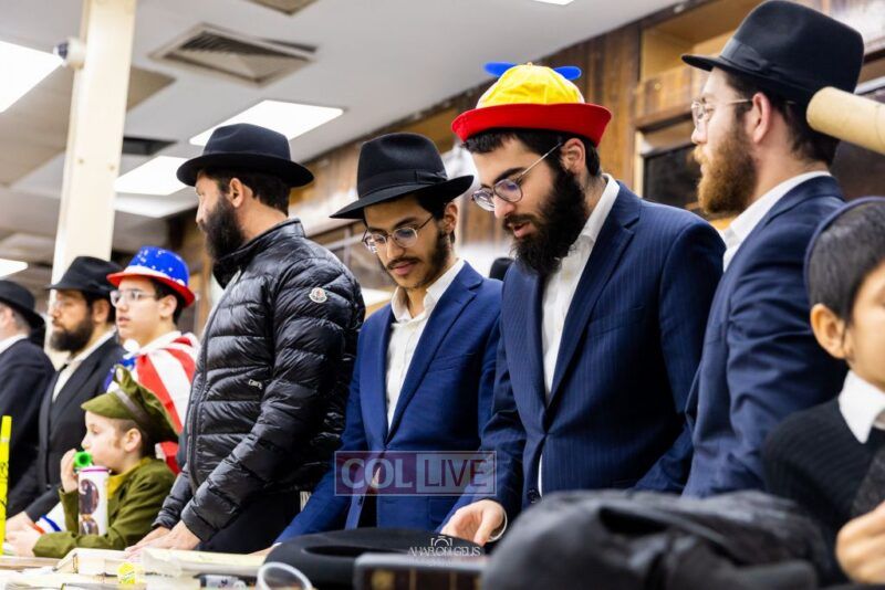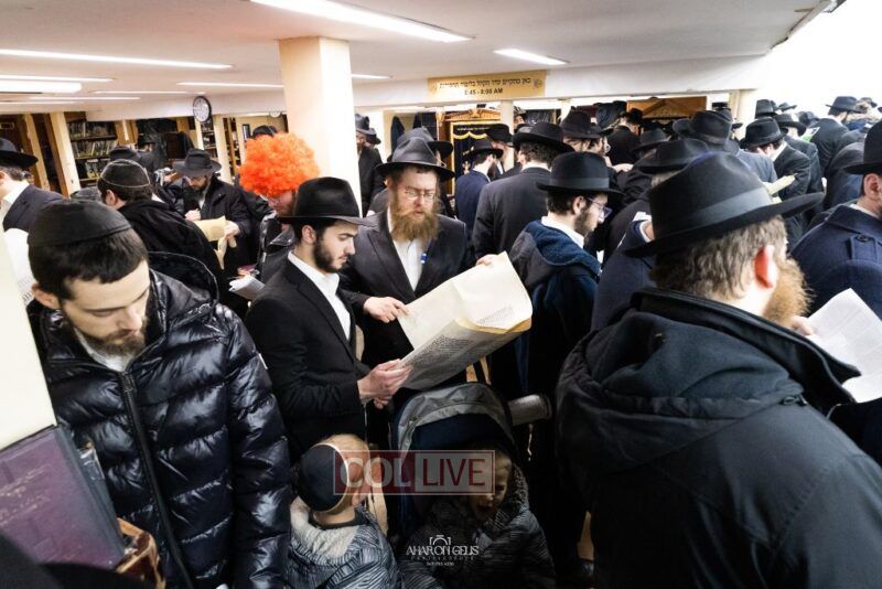 Colorful costumes were seen at 770 Eastern Parkway during the Megillah reading on Motzei Shabbos, Purim night. Photos, Video